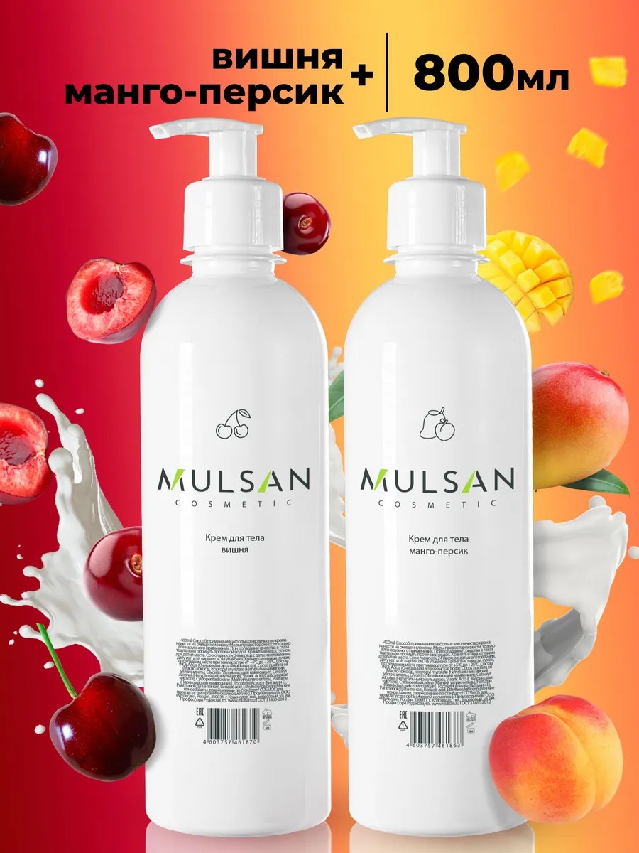 The MULSAN body cream set, featuring incredible scents of mango-peach and cherry, comes in 400 ml bottles. These unique cosmetics provide gentle hydration and nourishment.