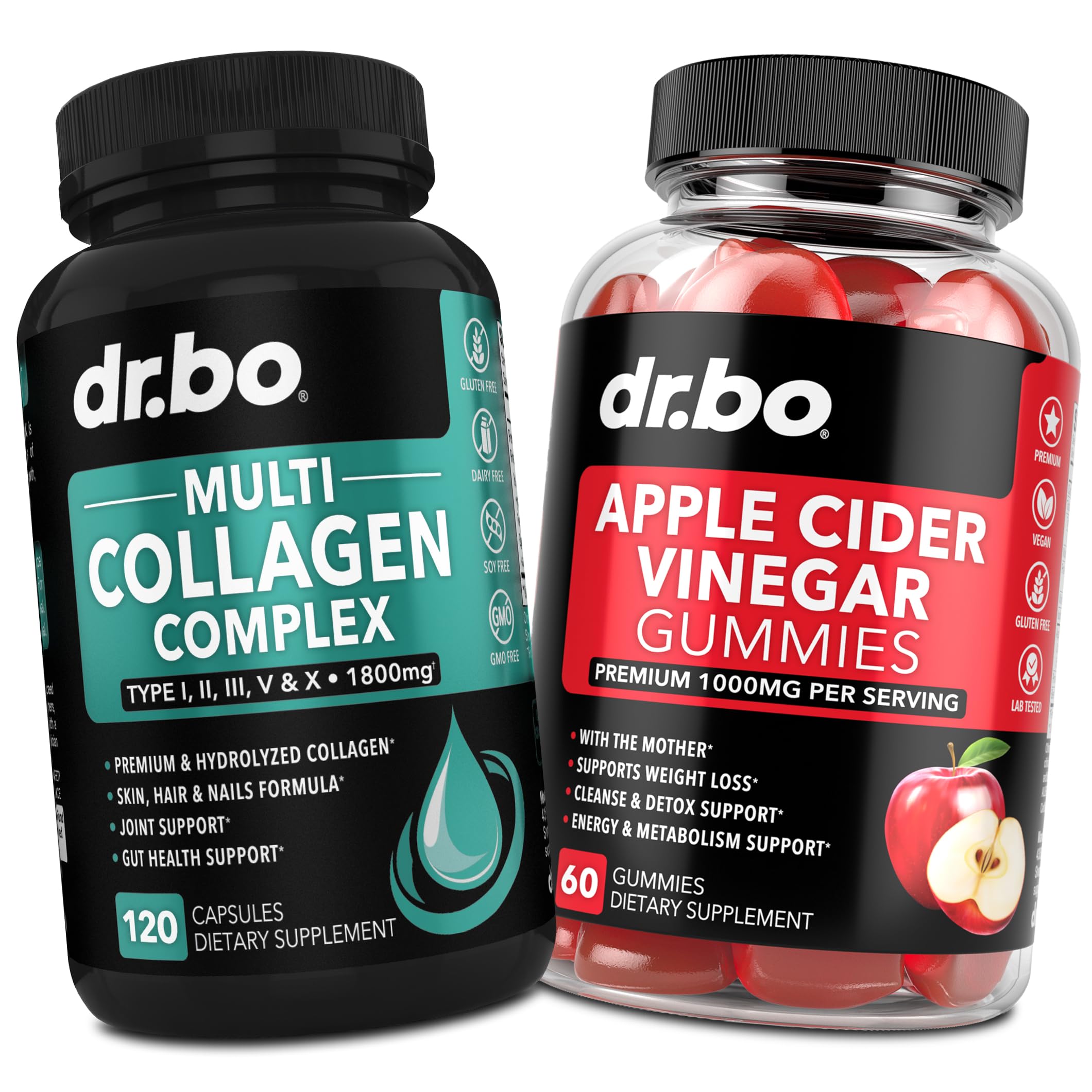 Multi Collagen Peptides & ACV Gummies - Type I II III V & X Multi Collagen for Women & Men Complex Capsules for Skin Hair & Nails - ACV Apple Cider Vinegar Gummies to Detox Cleansing Digestion