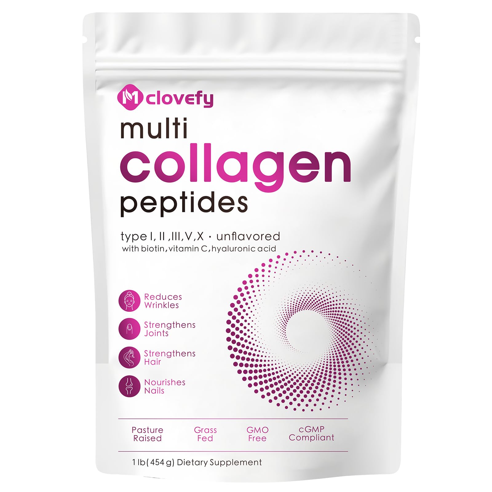 Pure and Safe Ingredients: Our collagen is free from soy, dairy, gluten, and tree nuts. It is GMP compliant to ensure purity and quality. If you encounter any issues, please contact us, and we will provide you with a satisfactory solution. Enhanced Absorption Formula: This powerful, unflavored multi collagen complex includes essential types of collagen (I, II, III, V, X), and is enhanced with hyaluronic acid and Vitamin C for better absorption. Comprehensive Support: Combining collagen with hyaluronic acid, vitamin C, and biotin, our colageno hidrolizado for women is designed to work together in the body to promote good collagen formation and rejuvenate any that you already have. A household staple for both men and women. Daily Convenience: Each sachet provides 1 lb of quality, unflavored collagen powder that dissolves easily in hot or cold beverages like coffee, tea, or smoothies. Ideal for busy lifestyles, this collagen powder supports your beauty and wellness goals with minimal effort. Collagen Boost: Our multi collagen peptides powder offers up to 11 grams of premium collagen peptides per serving, making it the ultimate collagen supplement. Created with premium hydrolyzed collagen for complete and efficient absorption that nourishes the hair, skin, nails, and joints.