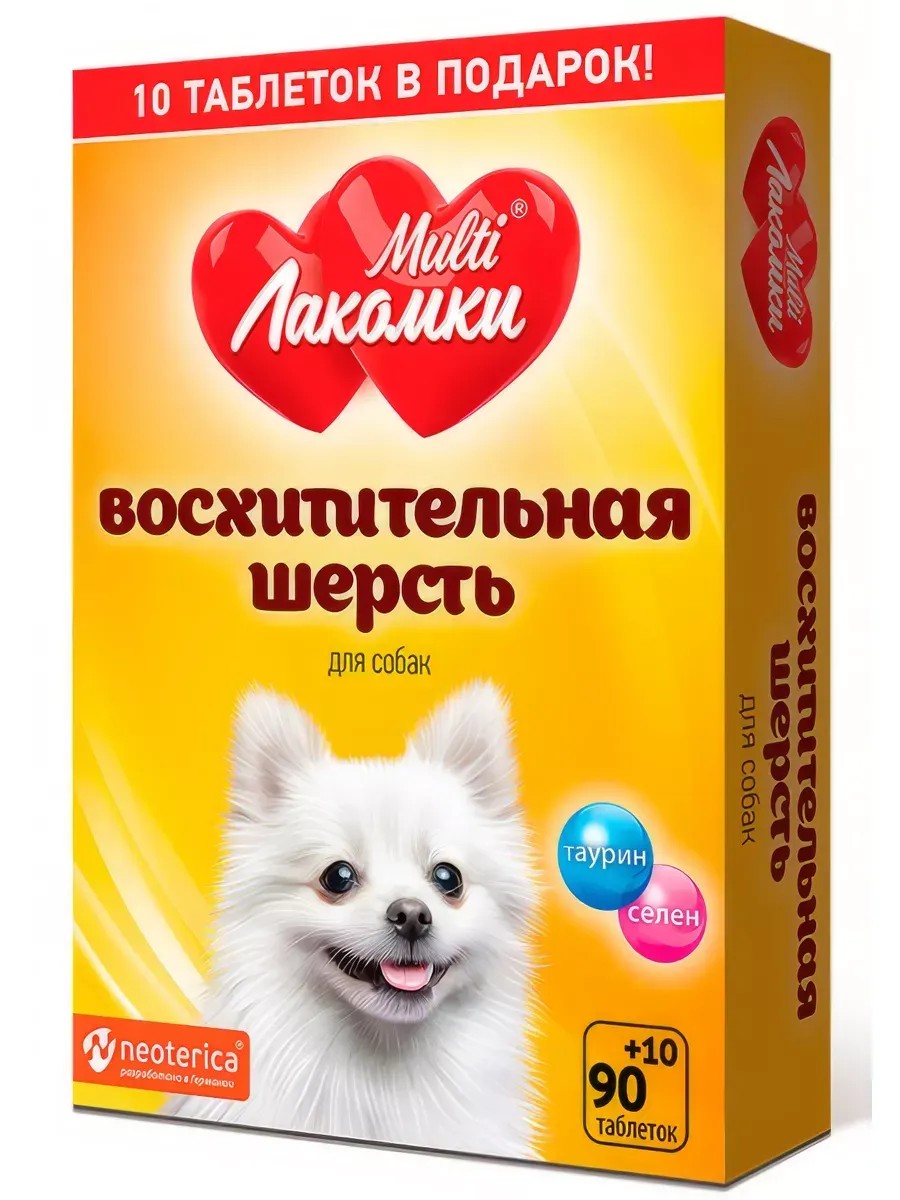 Dog vitamins from the Multi Treats brand are the perfect solution for maintaining your pet's health and energy. Each package contains 100 tablets, providing a complete set of essential nutrients for dogs.