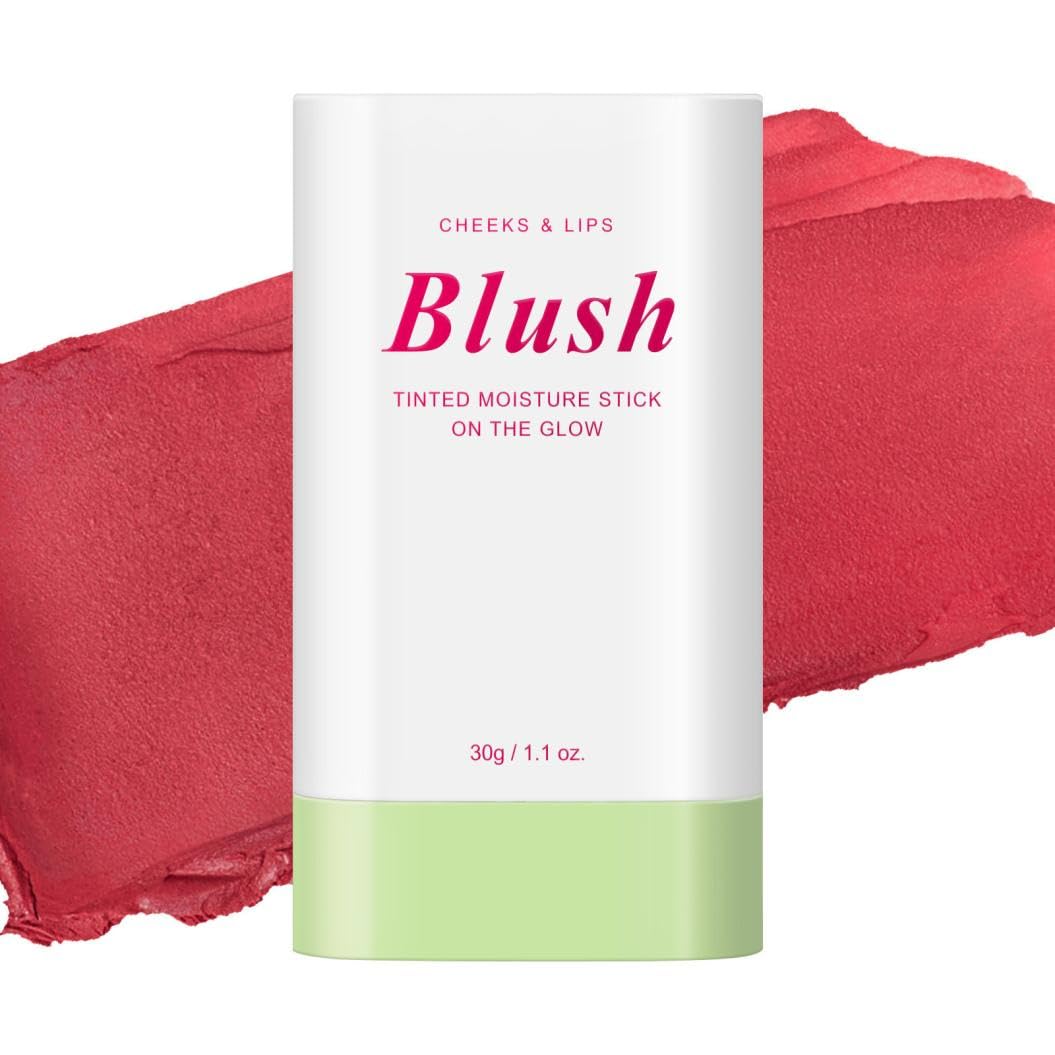 Multi-Use Makeup Blush Stick Beauty Solid Moisturizer Stick Waterproof Natural Nude Makeup Tinted Solid Moisturizer Stick for Eyes Lips Cheek (Rose red 30g)