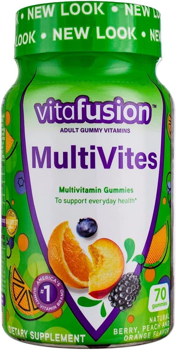 Vitafusion MultiVites are a delicious daily gummy multivitamin that provide a fusion of essential vitamins, minerals and delicious fruit flavors. Each two-gummy serving packs a punch, with as much Vitamin A as a cup of broccoli, as much Vitamin C as a tangerine, and as much Vitamin D as five ounces of salmon!