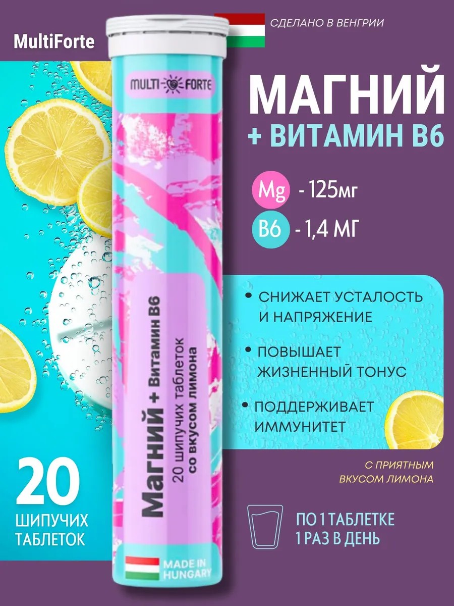 MULTIFORTE Магний (125 мг) + Витамин В6 (1.4 мг) шипучие таб. №20 лимон