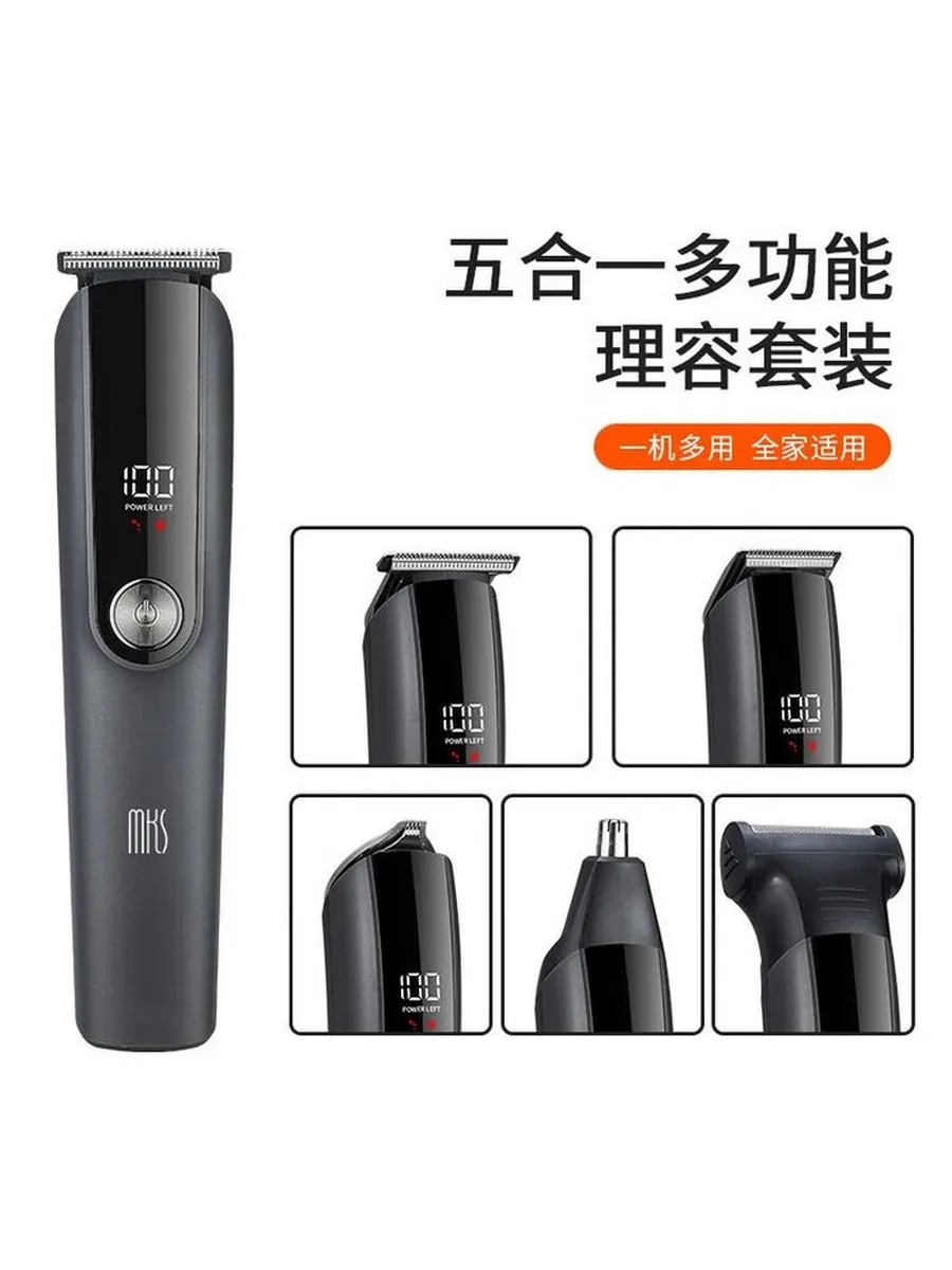 Электрический многофункциональный триммер MKS NV8708B (черный, 5 насадок, 5 гребней, аккумулятор, USB Type-C)