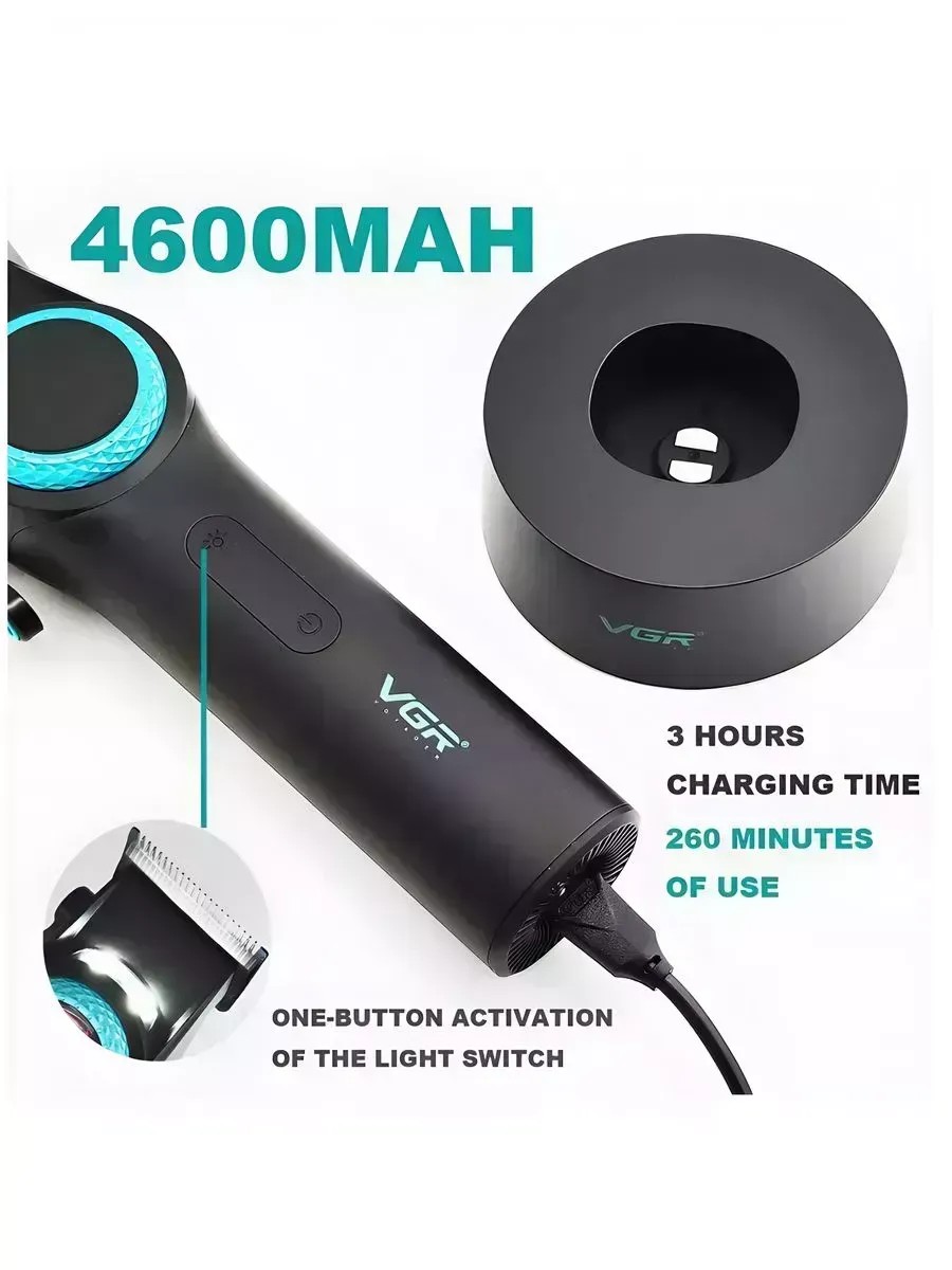 Машинка заряжается через порт Type-C, что позволяет быстро восстановить заряд, а встроенная литиевая батарея емкостью 4600 мАч обеспечивает до 260 минут автономной работы. Это дает возможность выполнять длительные процедуры без необходимости частой подзарядки.