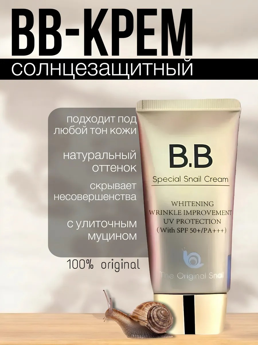 Тональный BB крем CROME SNAIL BB CREAM SPF50+ PA+++ с улиточным муцином – это идеальное сочетание ухода и макияжа. Он эффективно маскирует несовершенства, создавая ровный, матовый «фарфоровый» оттенок кожи без эффекта маски. Средняя плотность текстуры позволяет крему легко растушевываться, не утяжеляя покрытие. Крем выпускается в одном универсальном оттенке, который подстраивается под натуральный цвет кожи, обеспечивая естественный и свежий вид.
