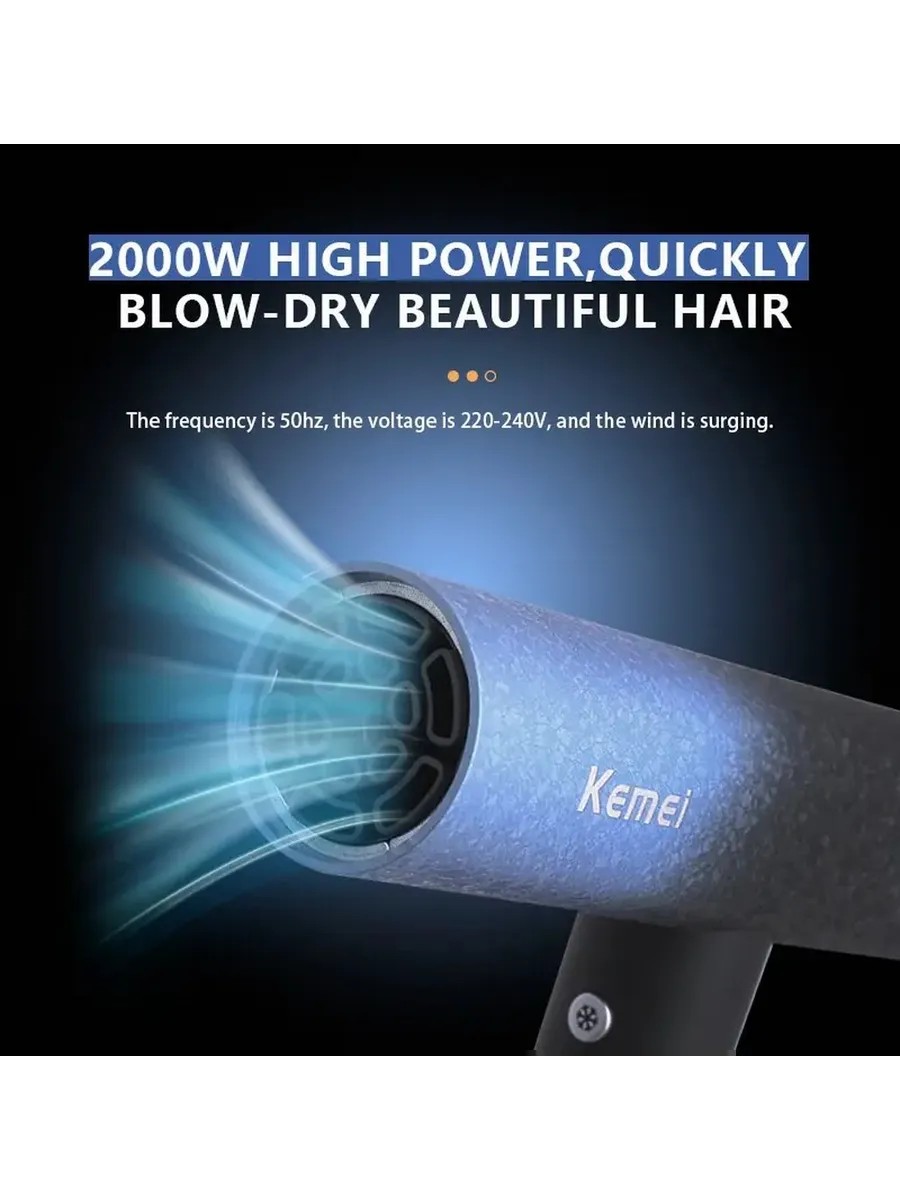 Discover our modern hair dryer, equipped with a powerful motor and multiple settings for the perfect style. This stylish and ergonomic device is ideal for both home and professional use. Its compact and lightweight design fits comfortably in your hand, ensuring comfortable use. Multifunctional heat and speed settings allow you to adapt the device to any hair type and desired style. Reliable construction and high-quality materials guarantee a long life and safe operation. The ergonomic design and low noise level make styling as pleasant and effective as possible. This hair dryer will become an indispensable assistant for creating professional hairstyles right at home, delivering fast and long-lasting results. Reliability, comfort, and versatility are the key advantages of this device, which will be appreciated by both professionals and home users. Improving technology and modern technologies allow you to achieve impeccable results with minimal effort. Choose our hair dryer and enjoy professional styling every day.