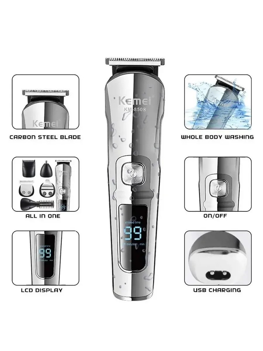 Upgrade your grooming routine with this versatile trimmer, which combines cutting, shaving, and grooming functions. This kit offers 11 different attachments and combs, making it easy to create stylish hairstyles, care for your skin, and maintain a neat appearance at home. The ergonomic design ensures comfortable use, and the powerful motor ensures reliable performance. Easy cleaning and a compact size make it the perfect companion for travel and everyday use. An essential tool for those who value quality and versatility in a single device.