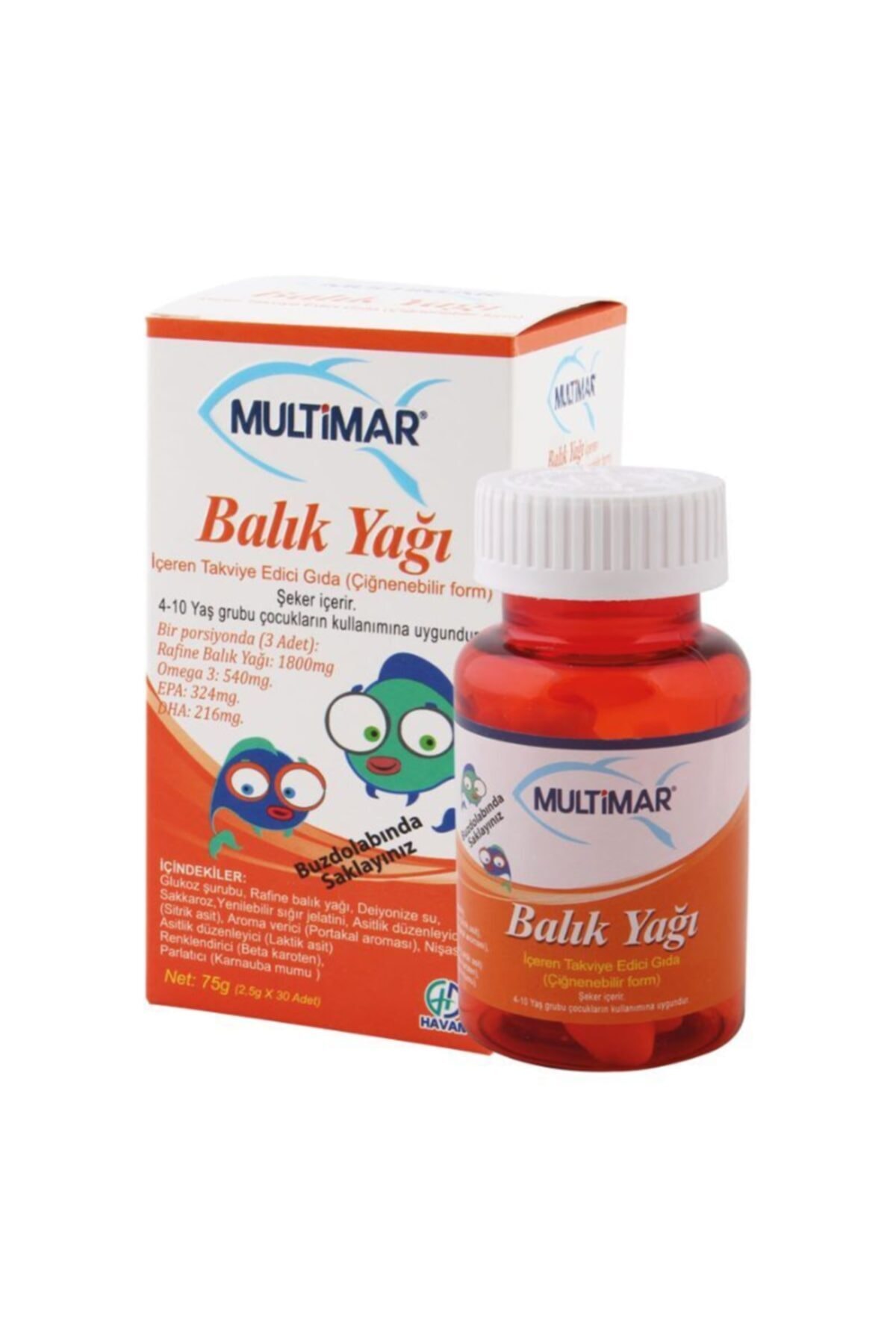 Multimar Fish Oil is Turkey's first and only chewable product. It's easy to use. This form, especially suitable for children who have difficulty using syrups, offers great convenience to parents. All children love and enjoy its taste, smell, and form.