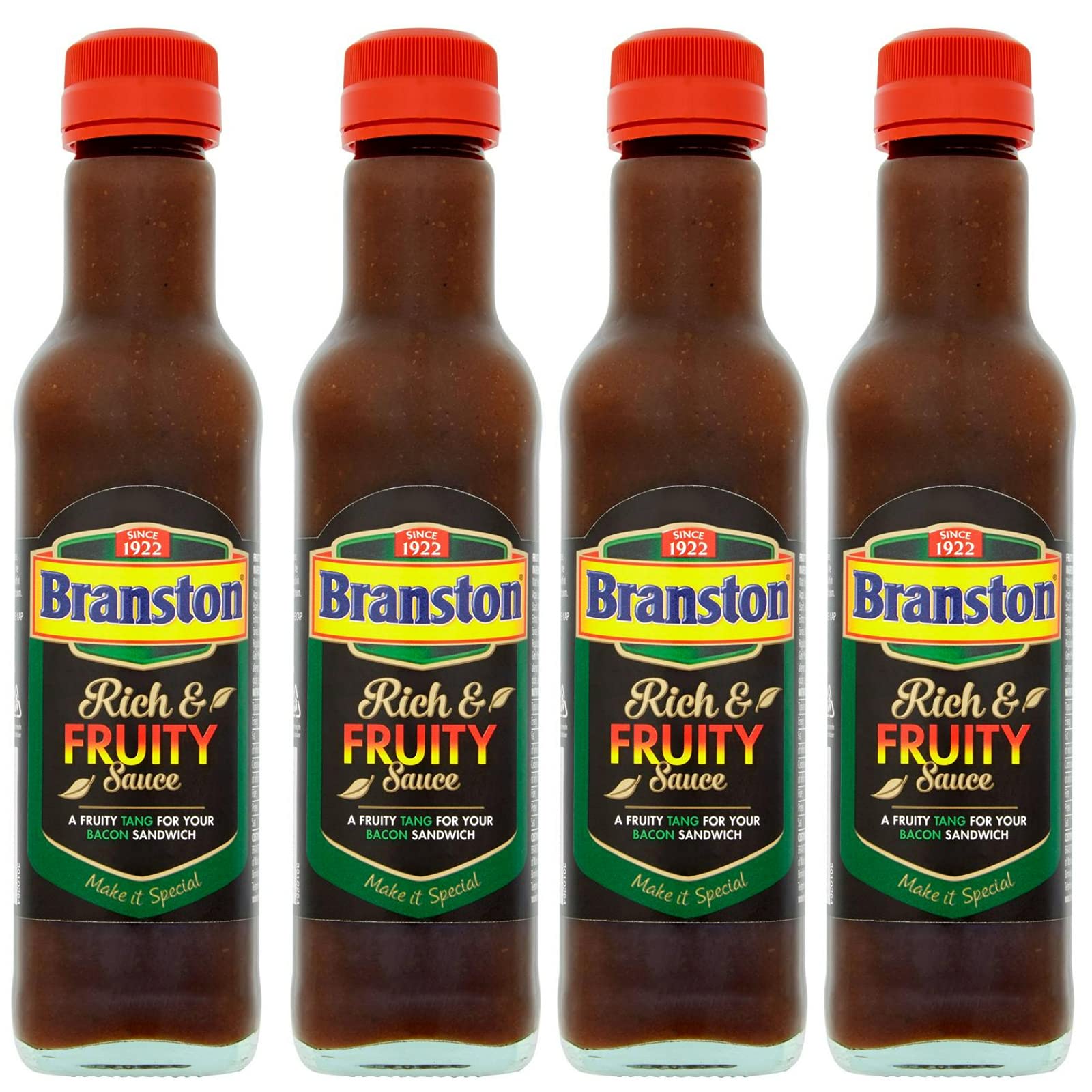 Make your sandwiches special with this fruity sweet pickle sauce. A rich and fruity brown sauce perfect for sandwiches or any kind of dish. It is also suitable for vegetarians. This pack contains: 4 x Branston Rich Fruity Sauce 245g Ingredients: Tomato Puree, Barley Malt Vinegar, Spirit Vinegar, Bramley Apple, Sugar, Date, Modified Corn Starch, Molasses, Salt, Barley Malt Extract, Preservative (Acetic Acid), Spices, Onion Powder, Acidity Regulator (Citric Acid), Renuric acid, Garlic Powder. Store in a cool, dry place. Once opened, keep refrigerated and consume within 6 weeks or by the date shown.Multiple Branston Sauce riche et fruitée (245 g) - Lot de 4DESCRIPTION DU PRODUIT Rendez vos sandwichs spéciaux avec cette sauce fruitée au cornichon sucré. Une sauce brune riche et fruitée parfaite pour les sandwichs ou les plats de toute sorte. Il convient également aux végétariens. Ce lot contient: 4 x Branston Riche Fruité Sauce 245g Ingrédients: Purée de Tomate, Vinaigre de Malt d'Orge, Vinaigre Spirit, Pomme Bramley, Sucre, Date, Amidon de maïs modifié, Mélasse, Sel, Extrait de Malt d'Orge Conservateur (Acide Acétique), Épices, Poudre d'oignon, Régulateur d'acidité (Acide Citrique), Rèneurgique notre, Mag de poudre d'ail dans un endroit frais et sec. Après ouverture, conserver au réfrigérateur et consommer dans les 6 semaines et par date indiquée.