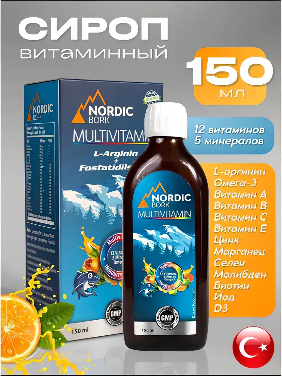 Мультивитамин-мультиминерал от Nordic Bork представляет собой уникальный сироп, разработанный специально для детей. Этот продукт сочетает в себе важные элементы питания, такие как омега 3, кверцетин, магнезиум, масло черного тмина, ресвератрол, цитрусовые биофлавоноиды, экстракты астрагала и крапивы, а также витамины B12 и D3. Все эти компоненты направлены на укрепление иммунитета и поддержание здоровья детей.