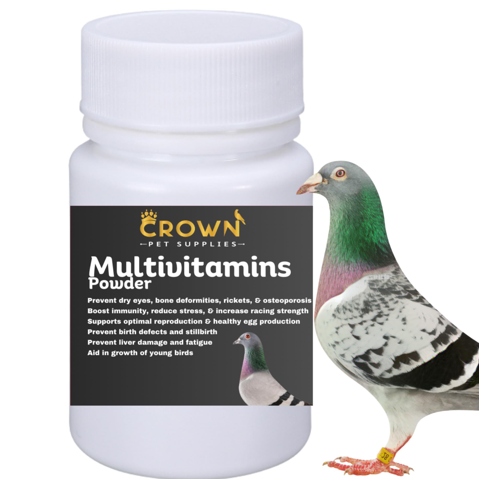 Multivitamin Powder for Pigeons – Ultimate Vitamin Formula for Racing Breeding – Supports Growth, Bone Strength, Reproductive Health Feather Health - Promotes Peak Performance Well-Being 50g
