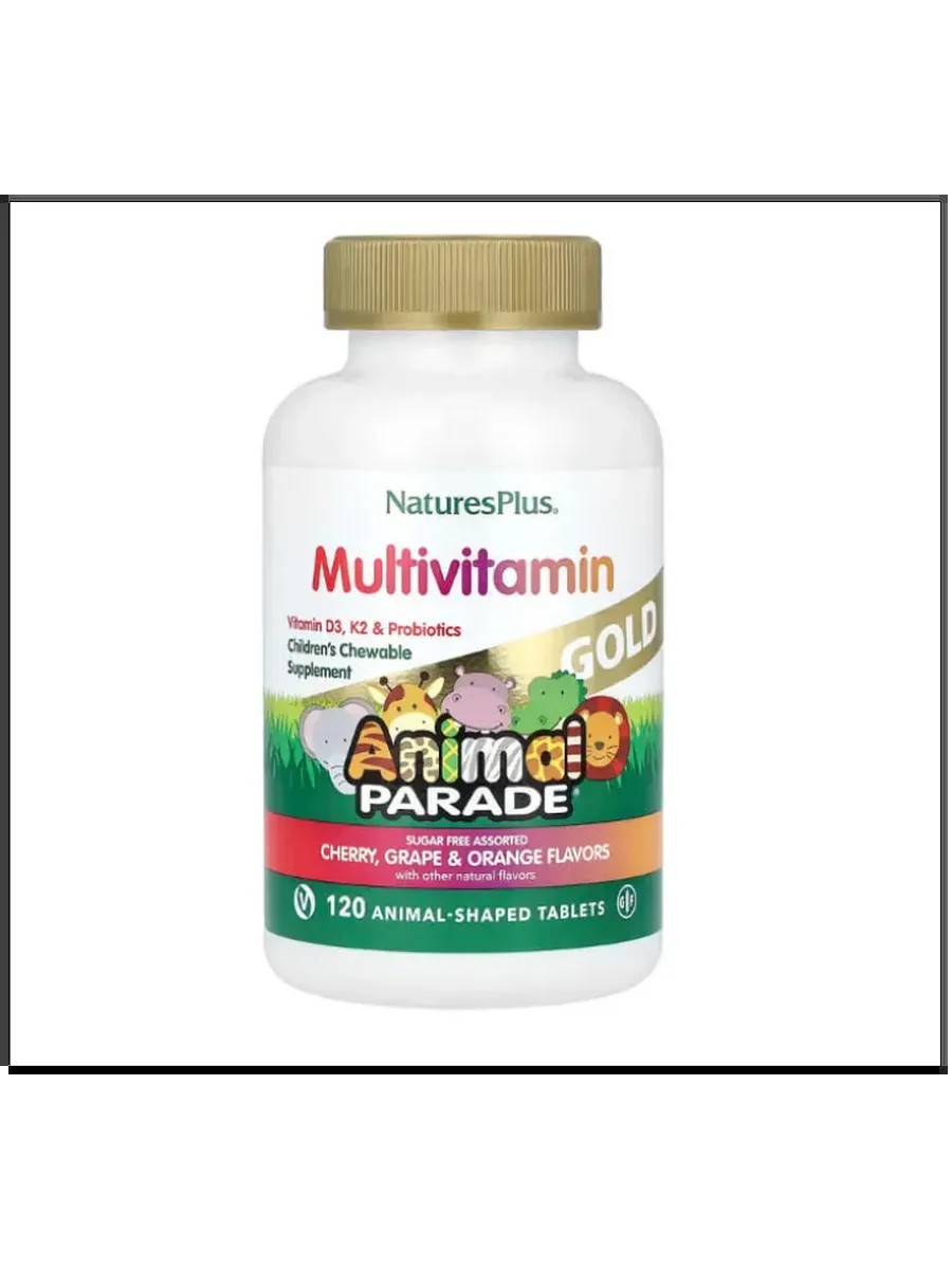 Мультивитамины Animal Parade GOLD представляют собой уникальный комплекс, разработанный специально для поддержания здоровья детей. Эти жевательные таблетки с приятным вкусом ассорти содержат все необходимые витамины и минералы, которые помогут вашему малышу расти здоровым и активным. В составе продукта присутствуют такие важные элементы, как витамин D3, который способствует укреплению костей и суставов, а также поддерживает иммунную систему вашего ребенка. Важной составляющей комплекса является витамин К2, который играет ключевую роль в поддержании кровяного здоровья. Витамины группы B помогают нервной системе справляться с нагрузками школьника или малыша в течение года. Лютеин защищает глаза от повреждений и переутомлений — это особенно важно для детей в период интенсивного роста и обучения. Animal Parade GOLD обогащен микроэлементами, которые необходимы для полноценного развития детского организма. Эти мультивитаминные жевательные таблетки не содержат сахара — вместо него используется ксилитол, что позволяет сохранить здоровье зубов вашего малыша без риска возникновения кариеса. Продукт подходит детям любого возраста начиная с 3 лет.
