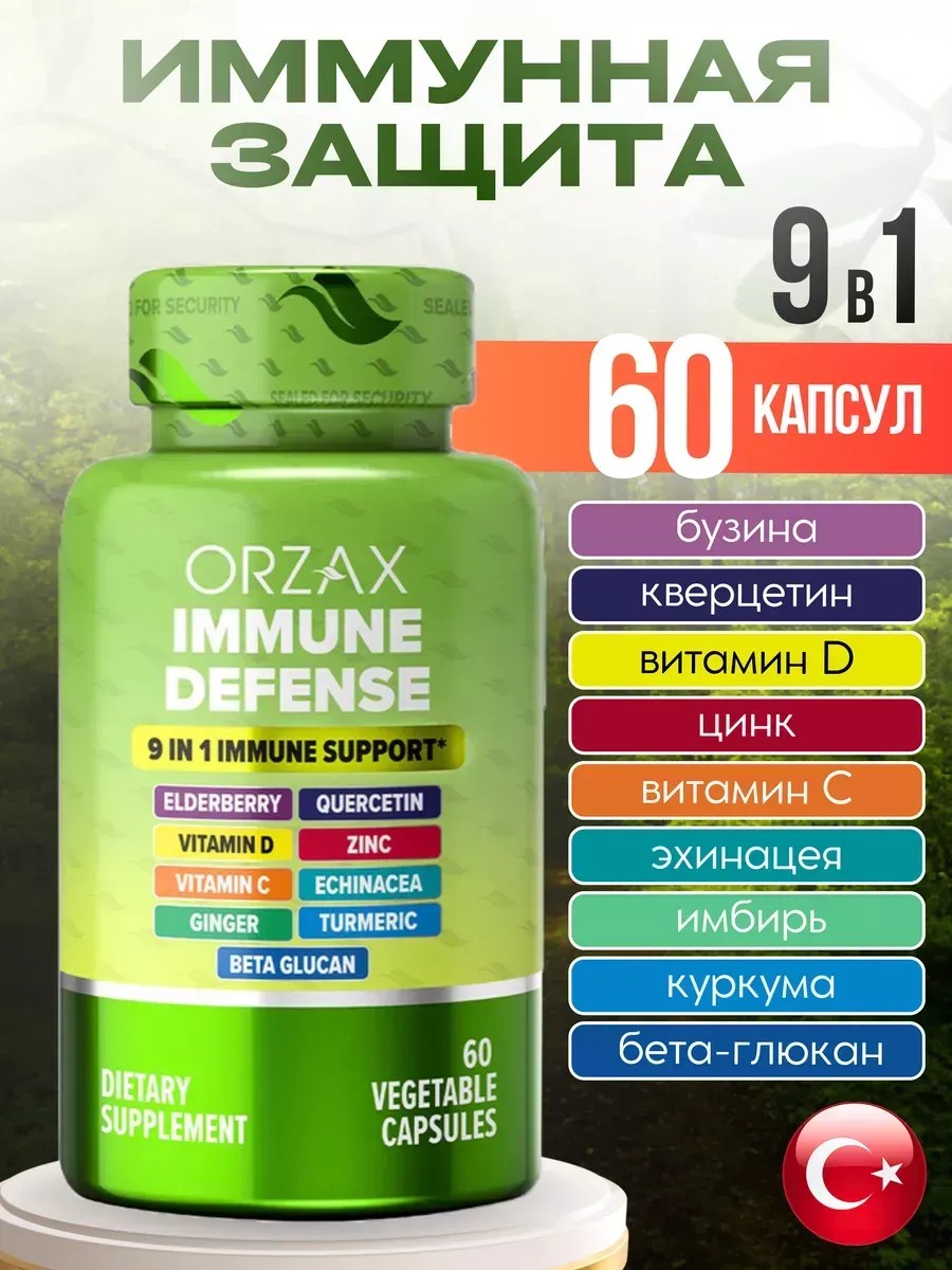 Турецкие витамины Orzax IMMUNE DEFENSE — мощный комплекс из 9 активных ингредиентов, созданный для поддержки и защиты вашего организма. Этот уникальный состав сочетает в себе витамины и экстракты растений, которые помогают укрепить иммунную систему и способствуют общему здоровью.