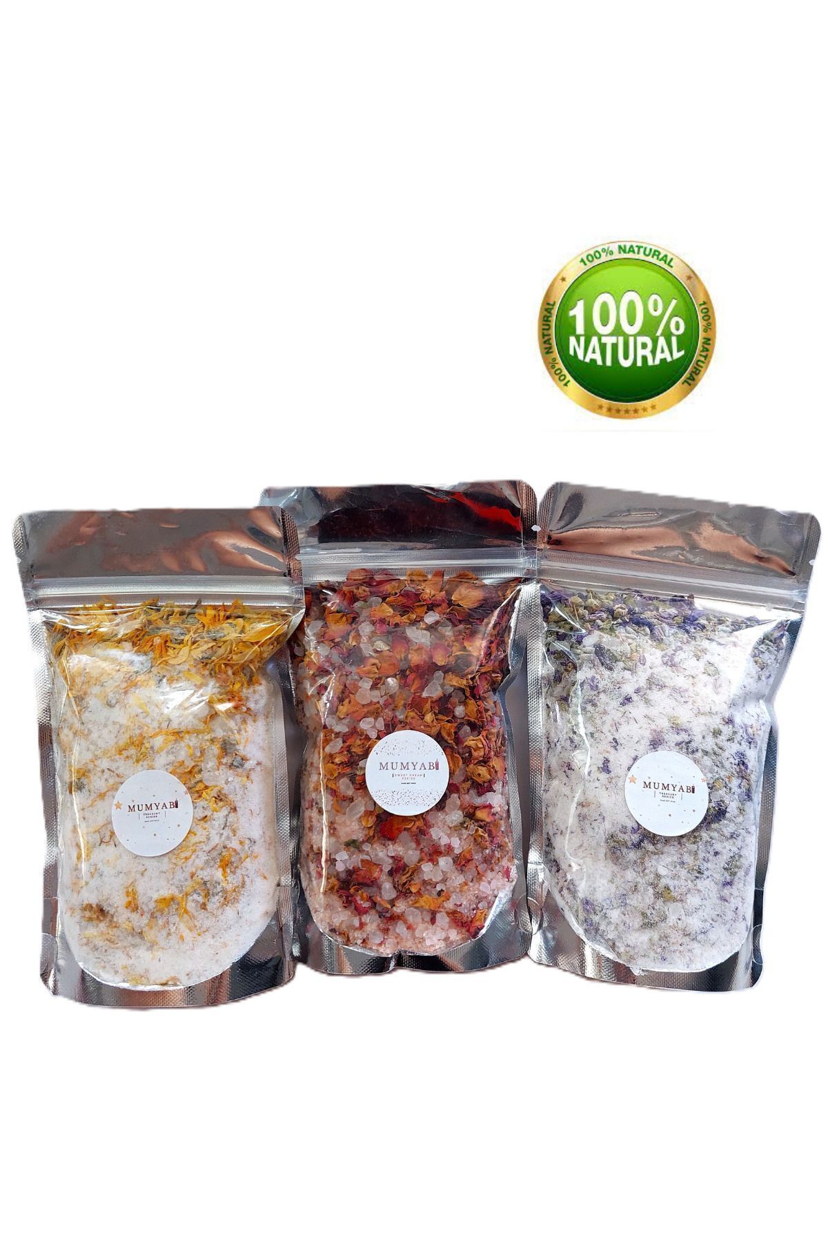 MUMYABI 3-pack Natural Rose-lavender-violet-ylang Oil Bath Rock Salt Manicure/pedicure Peeling3x300 gr