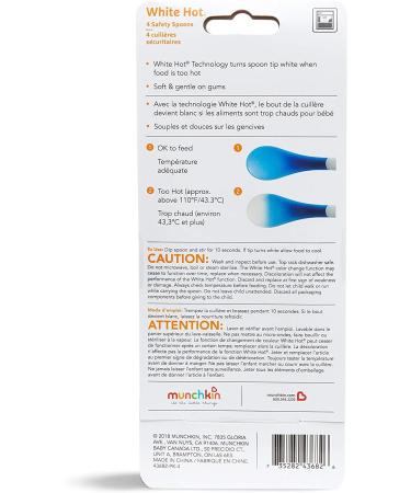 The introduction of complementary foods is an exciting time for itself and your baby and with the Munchkin spoon with a color system, the food always has the right temperature.Simply dive the spoon into the baby food and when the tip turns white, the food is too hot for the baby.Then just wait until it has cooled a bit and test again with the spoon, if the tip is no longer white, feed can be started.Part of our baby and toddler feed set, whose plates, bowls and cups are available separately. - Munchkin spoon with color system, colorful - set of 4 - Patented White Hot System - The spoon tip turns white when the baby food is too hot (approx. 43.3 C or higher) - conical spoon body - soft tips, gently to the gums - Long handles - dishwasher-safe, BPA and Phthalat-free - from 3 months - Ideal for the first meals, the suffering or toddlers - not cooking, microwave or steam sterilizable - no disposable plastic: Please reuse It depends on the little things: Munchkin is a multi -award -winning baby brand.We offer baby products and accessories for toddlers, including products for weaning, for the co -icing talter, drinking cups, bathing toys, stair grids and more - tailored to the needs of small children. Warnings For your child's safety and health.Danger!Always use this product under the supervision of adults.Check the product before each use.Throw away at the first sign of damage or weakness.Always check the food temperature before feeding.Clean the product before use.Do not cook or steam sterilize.Do not use a nasty cleaning agent.No longer expose sunlight.Do not let the child run or run when wearing the product.Do not place in a microwave or a hot oven.Dishwasher -resistant in the upper tableware basket.Not suitable for freezing.The white hot color change function can no longer work over time, replace if necessary.Discoloration does not affect the performance of the white-hot function.Please read and preserve this information for future references.Before use, remove all packaging components. Set contains: 1 x heat-sensitive security spoon-4 pack. Morefrom the Munchkin complementary series: plates and bowls for babies, accessories for toddlers, weaning sets and children's cup-tailored to the needs of small children.Ideal for Kindermünder: The pointed spoon is ideal for babies and toddlers The soft ends are gently to the gums and the long handles make it easier to feed in the high chair.Practical durable: these baby openers are dishwasher-safe, BPA and Phthalat-free Ideal for at home and on the go.Clever functions: Thanks to the refined heat display, the tip of the plastic spoon knows when the baby food is too hot (approx. 43.3 degrees Celsius or more).Munchkin spoon set: This baby opener combine clever design with a color -changing temperature display and are suitable for babies toddlers from 3 months.Die Einführung der Beikost ist für sich und Ihr Baby eine aufregende Zeit und mit dem Munchkin Löffel mit Farbsystem hat das Essen immer die richtige Temperatur. Tauche den Löffel einfach in die Babynahrung und wenn sich die Spitze weiß färbt, ist das Essen zu heiß für das Baby. Dann einfach abwarten, bis sie etwas abgekühlt ist und mit dem Löffel erneut testen, wenn die Spitze nicht mehr weiß ist, kann mit dem Füttern begonnen werden. Teil unseres Baby- und Kleinkind-Futtersets, dessen Teller, Schüsseln und Tassen separat erhältlich sind. - Munchkin Löffel mit Farbsystem, bunt - 4er-Set - Patentiertes White Hot System - Die Löffelspitze färbt sich weiß, wenn die Babynahrung zu heiß ist (ca. 43,3 C oder höher) - Konischer Löffelkörper - Weiche Spitzen, sanft zum Zahnfleisch - Lange Griffe - Spülmaschinengeeignet, BPA- und phthalatfrei - ab 3 Monaten - Ideal für die ersten Mahlzeiten, die Beikosteinführung oder für Kleinkinder - Nicht kochen, mikrowellen- oder dampfsterilisierbar - Kein Einwegplastik: bitte wiederverwenden Auf die kleinen Dinge kommt es an: Munchkin ist eine mehrfach ausgezeichnete Babymarke. Wir bieten Babyprodukte und Zubehör für Kleinkinder, darunter Produkte zum Abstillen, für das Beikostalter, Trinklernbecher, Badespielzeug, Treppengitter und mehr – abgestimmt auf die Bedürfnisse von Kleinkindern. WARNHINWEISE Für die Sicherheit und Gesundheit Ihres Kindes. Achtung! Verwenden Sie dieses Produkt immer unter Aufsicht von Erwachsenen. Überprüfen Sie vor jedem Gebrauch das Produkt. Werfen Sie beim ersten Anzeichen von Schaden oder Schwäche weg. Überprüfen Sie immer die Lebensmitteltemperatur vor dem Füttern. Reinigen Sie das Produkt vor dem ersten Gebrauch. Nicht kochen oder dampfsterilisieren. Verwenden Sie kein scheuerndes Reinigungsmittel. Nicht längerem Sonnenlicht aussetzen. Lassen Sie das Kind beim Tragen des Produkts nicht laufen oder laufen. Nicht in eine Mikrowelle oder einen heißen Ofen stellen. Spülmaschinenfest im oberen Geschirrkorb. Nicht zum Einfrieren geeignet. Die weiße Heißfarbwechselfunktion kann im Laufe der Zeit nicht mehr funktionieren, bei Bedarf ersetzen. Verfärbungen beeinträchtigen nicht die Leistung der Weiß-Heiß-Funktion. Bitte lesen und bewahren Sie diese Informationen für zukünftige Referenzen auf. Entfernen Sie vor Gebrauch alle Verpackungskomponenten. SET ENTHÄLT: 1 x Wärmeempfindliche Sicherheitslöffel-4-er Pack. MehrAUS DER MUNCHKIN BEIKOST-SERIE: Teller und Schüsseln für Babys, Zubehör für Kleinkinder, Entwöhnungs-Sets und Kinderbecher - abgestimmt auf die Bedürfnisse von Kleinkindern. IDEAL FÜR KINDERMÜNDER: Der spitz zulaufende Löffel ist ideal für Babys und Kleinkinder die weichen Enden sind sanft zum Zahnfleisch und die langen Griffe erleichtern das Füttern im Hochstuhl. PRAKTISCH LANGLEBIG: Diese Babylöffel sind spülmaschinenfest, BPA- und phthalatfrei ideal für zu Hause und unterwegs. CLEVERE FUNKTIONEN: Dank der raffinierten Hitzeanzeige färbt sich die Spitze des Kunststofflöffels weiß, wenn die Babynahrung zu heiß ist (ca. 43,3 Grad Celsius oder mehr). MUNCHKIN LÖFFE