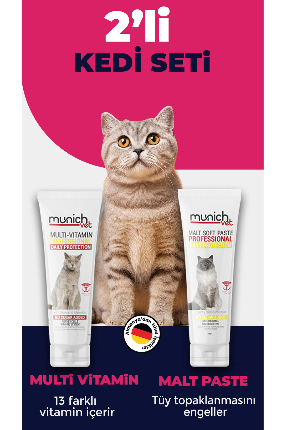 Natural Ingredients, Sugar-Free. Your cat needs to eliminate the hair and other indigestible substances it swallows while grooming itself through healthy and natural means. This process is healthier for cats living in the wild. For house cats, digestion, especially the hair they swallow, poses a significant problem. This is because, unlike in the wild, our indoor cats generally eat a more monotonous diet. Unlike in nature, a house cat's diet lacks various herbs, plants, and minerals. Hair accumulated in the intestines can cause digestive problems in your cat, manifesting as loss of appetite and vomiting. Using a quality product that will solve these problems is crucial for your cat's quality of life. Munich Vet Anti-Hairball Malt Paste, with its high-quality malt extract and natural oils, ensures healthy and natural elimination.