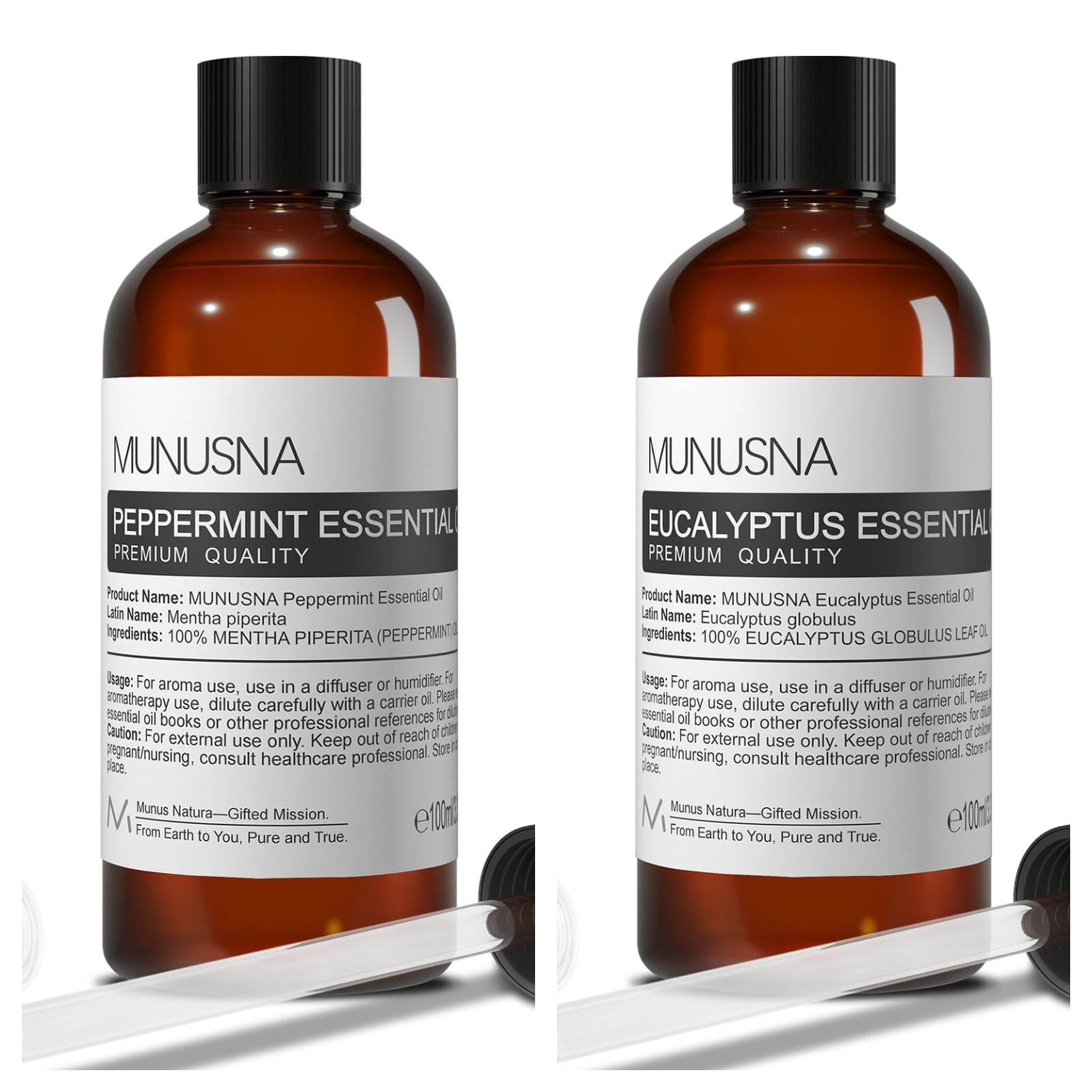 MUNUSNA Eucalyptus Essential Oil and Peppermint Essential Oil Premium Grade Pure & Natural Essential Oils for Hair Body Skin Aromatherapy Diffuser Meditation Massage Home Candle Soap Bath Bo