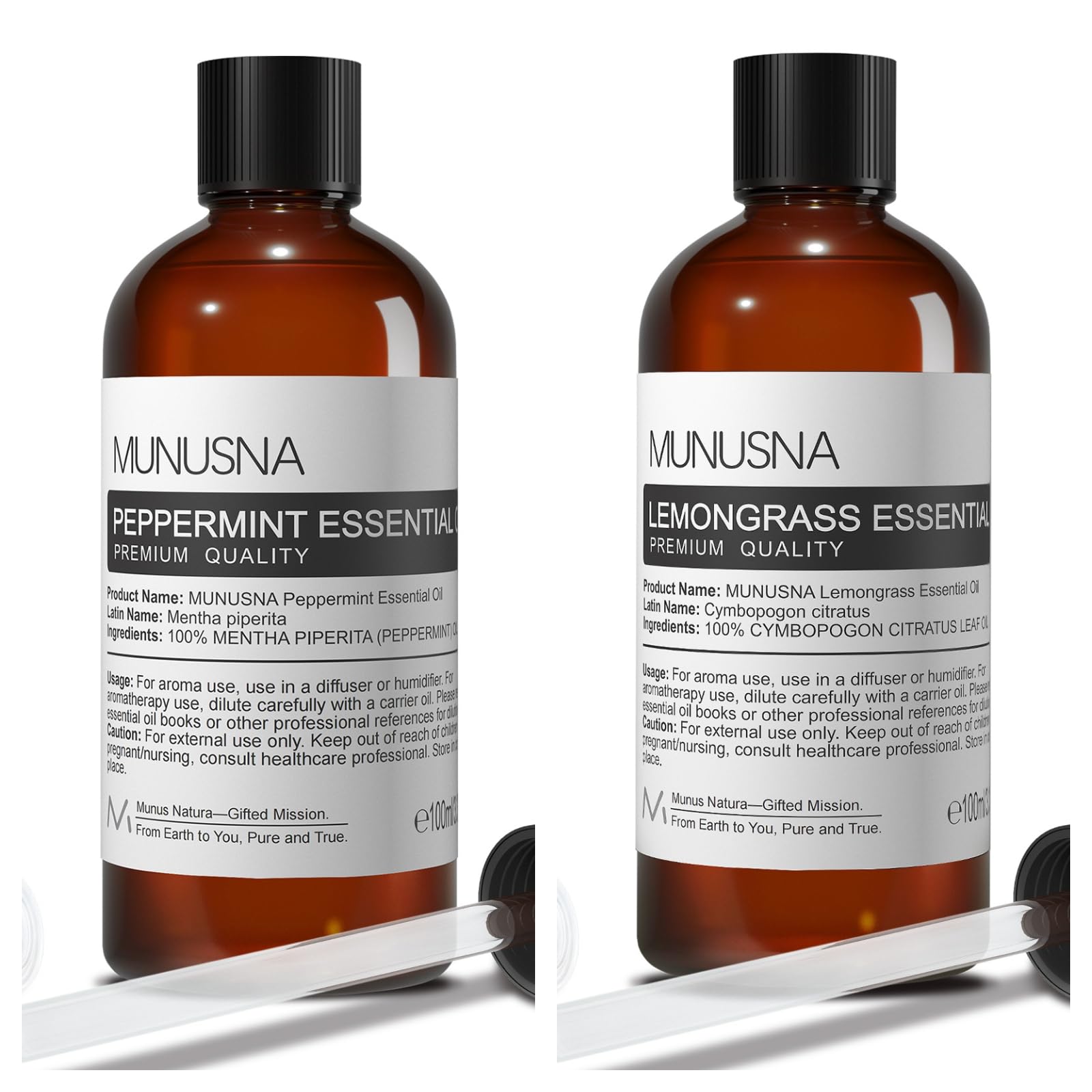 MUNUSNA Peppermint Essential Oil and Lemongrass Essential Oil Premium Grade Pure & Natural Essential Oils for Hair Body Skin Aromatherapy Diffuser Meditation Massage Home Candle Soap Bath Bo