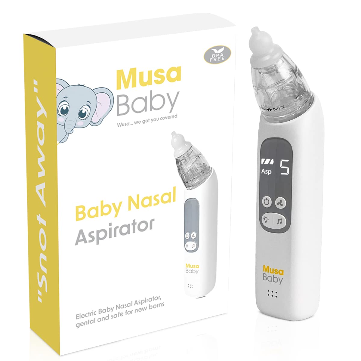 Get rid of those boogies so your baby can breathe easier with an automatic nasal aspirator from Musa Baby that helps them rest and sleep more comfortably. When your baby gets a stuffy nose it can be hard for them to breathe, get comfortable, and sleep; especially if their boogers are clogging out their tiny nasal passages. We want to help keep those areas cleaner and clearer with the Musa Baby Nasal Aspirator designed specifically for little noses. Complete with automatic suction, five adjustable vacuum levels, and soft, silicone tips this handheld aspirator helps remove snot and mucus quickly without causing them stress or discomfort. Better , we designed it to play peaceful music to keep them distracted, colorful lights to keep them visually engaged, and changeable tips so you can always keep a fresh, clean one ready. Take a proactive approach to keeping your baby’s airways clear by starting with those stopped up nasal passages. Get the [Brand] baby nasal aspirator today and get through those uncomfortable days a whole lot faster. Product Details: ? Baby Nasal Aspirator Smooth, Gentle Suction Three (3) Soft, Silicone Tips Removes Snot, Mucus, and Boogers Safe for Newborn Infants, Toddlers, and Kids Easy to Clean, Wipe Down, and Reuse USB Rechargeable Battery Help keep your baby’s nasal passages clear so they can breathe a little easier with a gentle nasal aspirator that removes those sticky, slimy boogers quickly. Get one today by clicking above .Long-Lasting Rechargeable Battery – Super important for busy moms and dads we made this baby nasal aspirator USB rechargeable and with an extra-long battery life, so you can keep it in their nursery or in the bathroom for quick suction needs. Easy to Disassemble and Clean – A low maintenance design for parents our nasal aspirator for toddlers and infants features dishwasher safe tips and reservoir to make it easy to remove any excess gunk or stuck-on boogers for cleaner in-between uses. Adjustable Suction Power – Offering a more effective clean than bulbs this baby nasal aspirator electric unit lets you swap between five suction levels to better support your child and to ensure it’s safe, effective, gentle, and stress free. Soft, Silicone Suction Tips – Ideal for little noses this nasal aspirator for kids comes with three interchangeable silicone tips that slides right into the nasal cavity to create a strong, yet gentle suction that works far better than nasal aspirator bulbs. Automatic Baby Nasal Aspirator – A modern take on the baby nasal aspirator bulb this electric, handheld suction system quickly pulls out snot bubbles, boogers, and mucus from your child’s nose so they can breathe more clearly and comfortably.Best Sellers Rank: See Top 100 in Baby. Age Range (Description): Baby. Product Care Instructions: Hand Wash Only. Brand: Musa Baby. Color: White. Material: Silicone. Country of Origin: China. : B0B4FH71W7. Manufacturer: Musa Baby. Date First Available: June 18, 2022. Item model number: BC026. Package Dimensions: 6.73 x 4.21 x 2.13 inches; 11.36 Ounces.