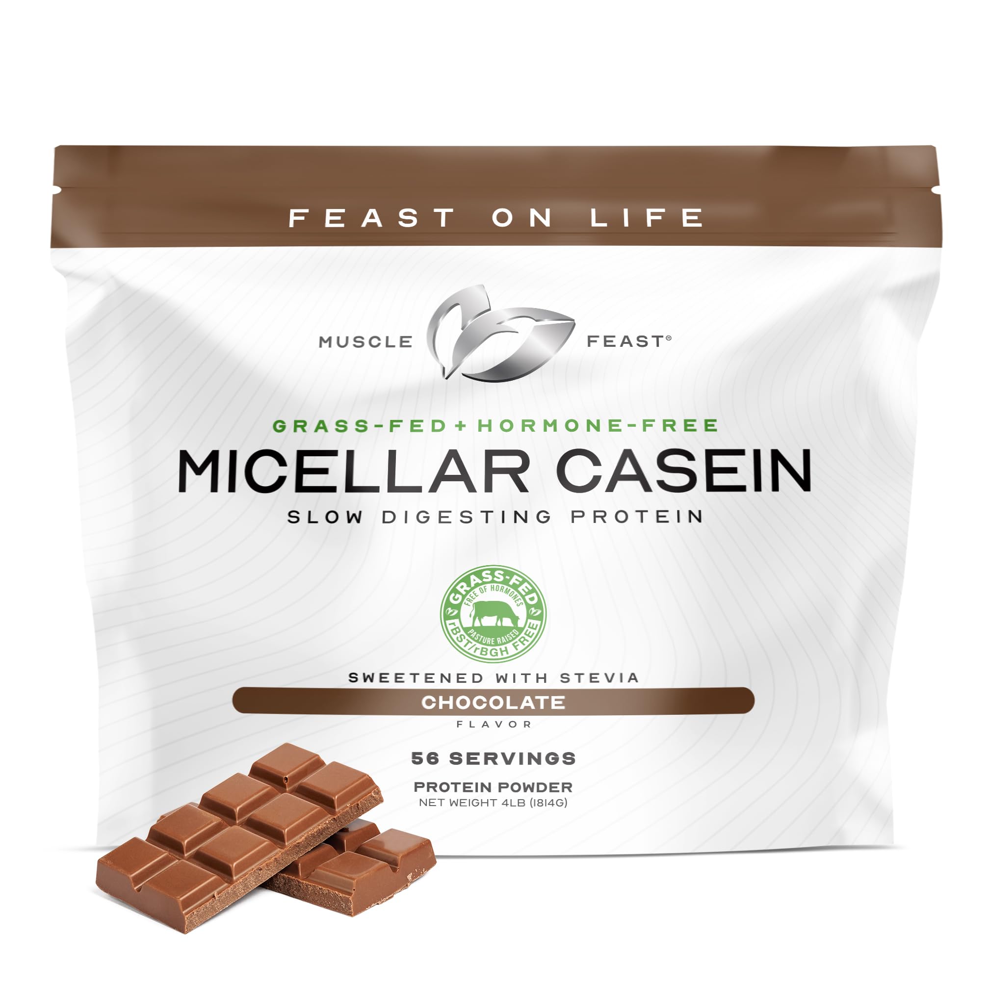 Muscle Feast Grass Fed Micellar Casein Protein Powder Pasture Raised & Hormone Free Slow Digesting Casein Protein - Supports Overnight Muscle Recovery Gluten Free Protein Powder - Chocolate 4lb Chocolate 4 Pound