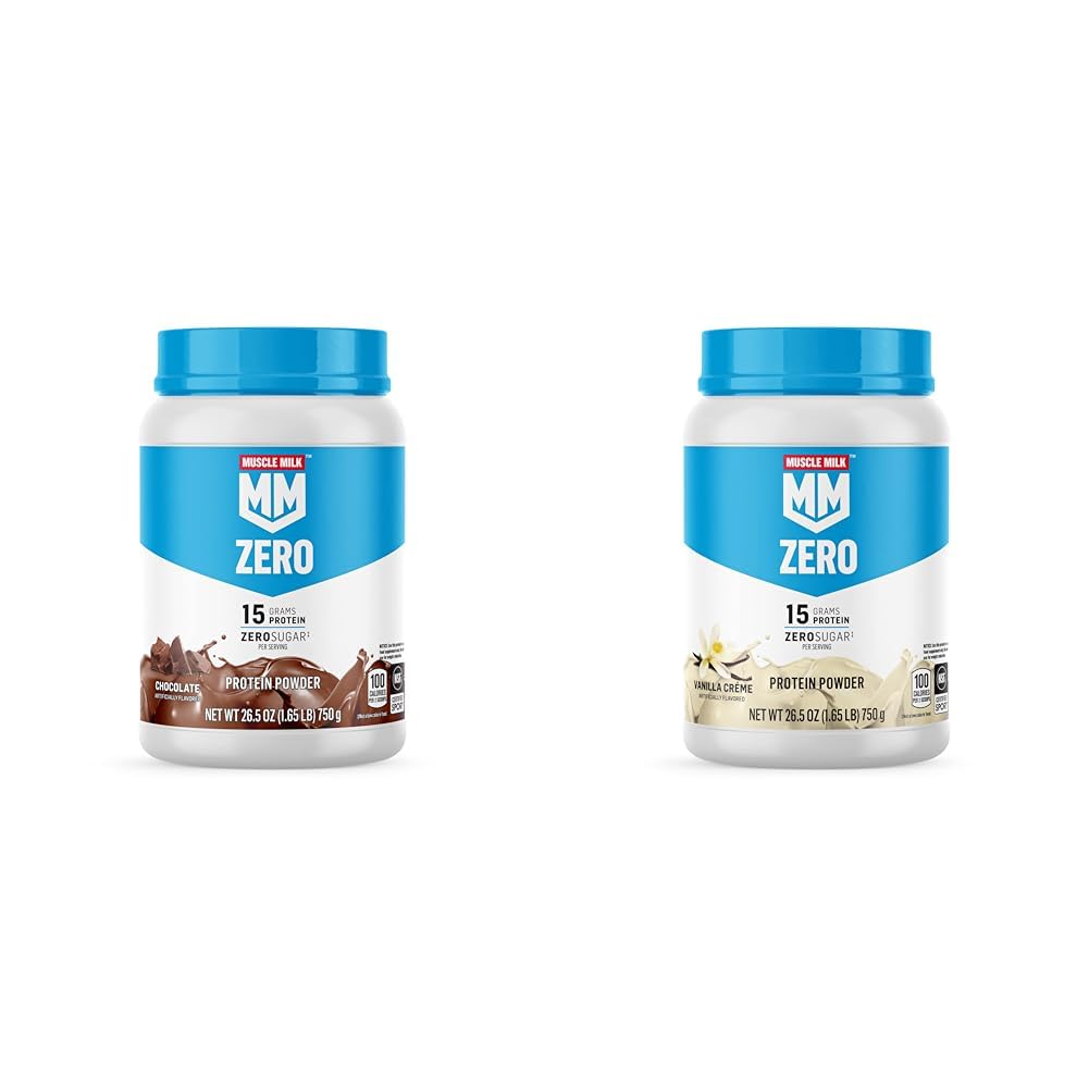 NSF Certified for Sport - Tested for 270 banned substances. Combination of fast and slow releg proteins helps increase amino acid levels. Protein powder easily mixes into water, coffee, smoothies and recipes when you need a protein boost. Each serving has 15g protein, 100 calories, zero sugar, plus calcium and Vitamins A, C D. Contains two 1.65 lb containers of Muscle Milk Zero protein powder (25 servings each) in Chocolate and Vanilla flavors.