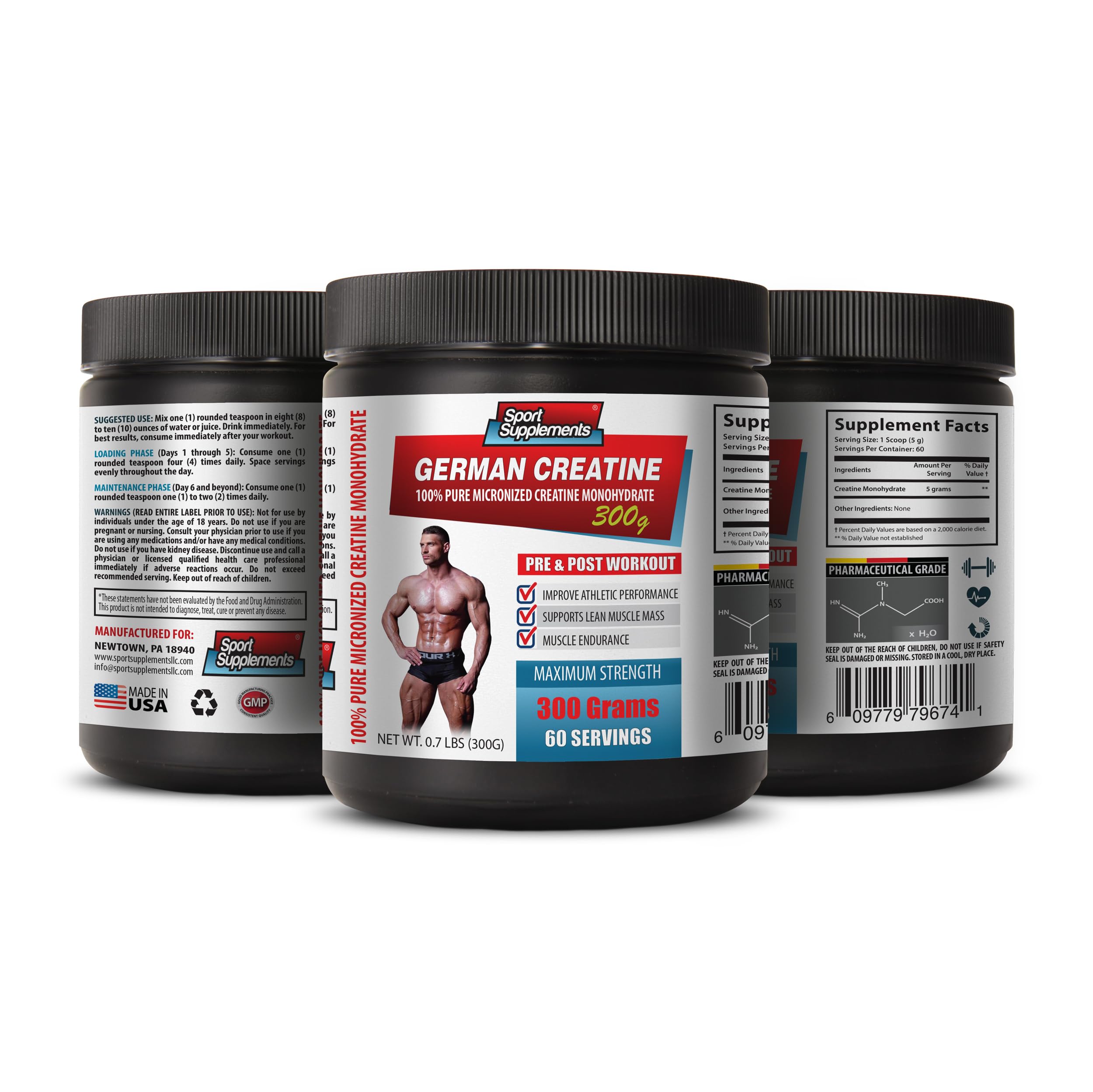 MUSCLE PUMP PRE WORKOUT: Creatine supplementation has been reported to increase body mass and improve performance in high-intensity, short duration exercise tasks Using this supplement in combination with strength training amplifies the increase in muscle cell nuclei concentration, thereby increg the growth of adult skeletal muscle in healthy male subjects. CREATINE FOR BRAIN: This powerful supplements can be benefitial for boostin brain functions. Creatine may provide cognitive enhancement, it can be beneficial for improving alertness, concentration and attention. POST WORKOUT MUSCLE RECOVERY: Also creatine can be beneficial for muscle recovery. Some study says creatine may help improve muscle recovery and recovery from exercise, such as maximizing results from strength training. GERMAN CREATINE - 100 PURE MICRONIZED CREATINE MONOHYDRATE: Creatine is a chemical that is normally found in the body, mostly in muscles but also in the brain. It is commonly found in the diet in red meat and seafood. Creatine is formed of three amino acids: L-arginine, glycine, and L-methionine. It makes up about 1 percent of the total volume of blood.