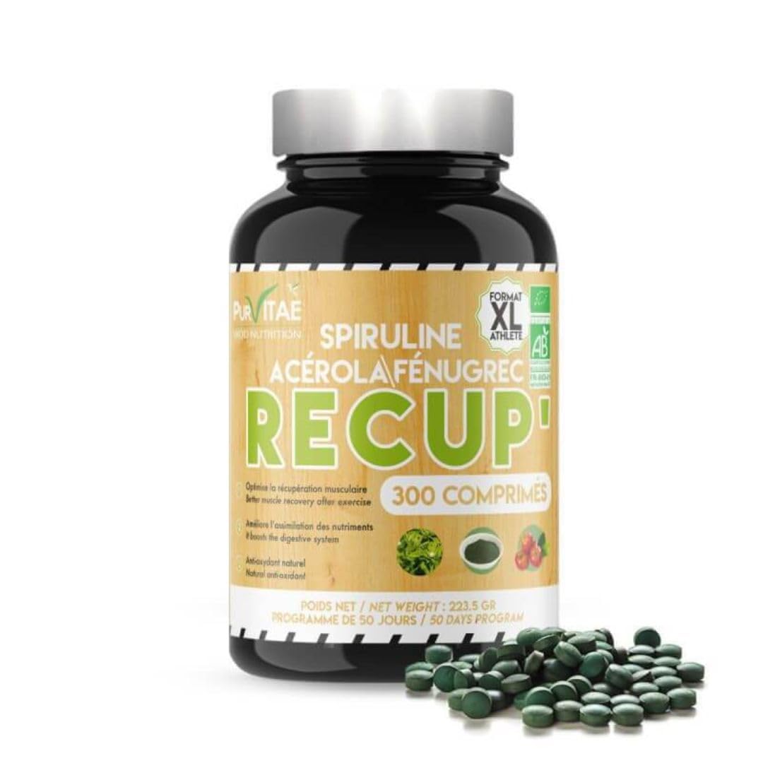 Muscle Recovery | RECUP Spirulina Acerola Fenugreek Organic | 70% Plant Protein | Reduces Sore Tones | Natural Antioxidant XL Size (Recup XL)