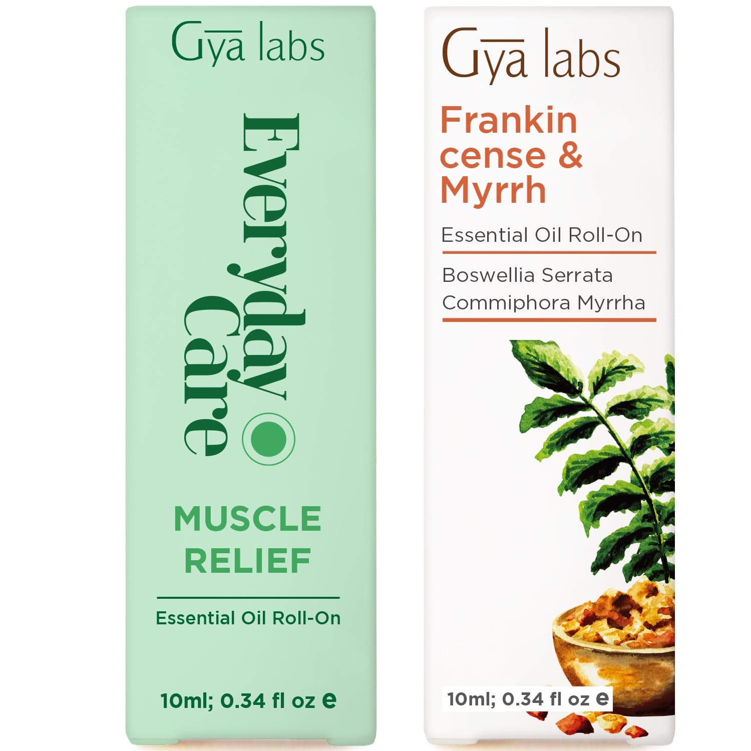 Muscle Relief & Frankincense Myrrh Roll On Set - Essential Oils Aromatherapy Roll On with Essential Oil Set - 2x0.34 fl oz - Gya Labs
