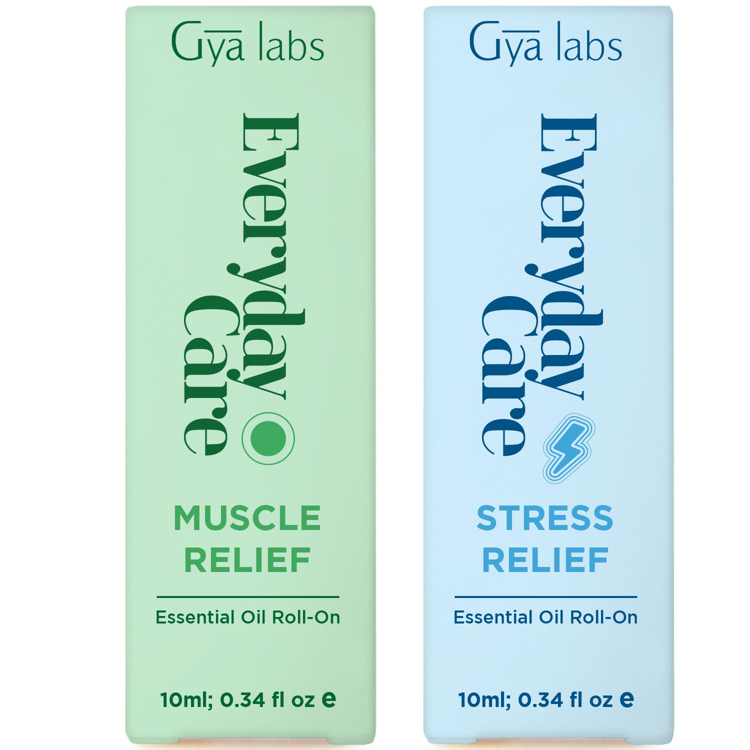 Muscle Relief & Stress Relief Roll On Set - Essential Oils Aromatherapy Roll On with Essential Oil Set - 2x0.34 fl oz - Gya Labs