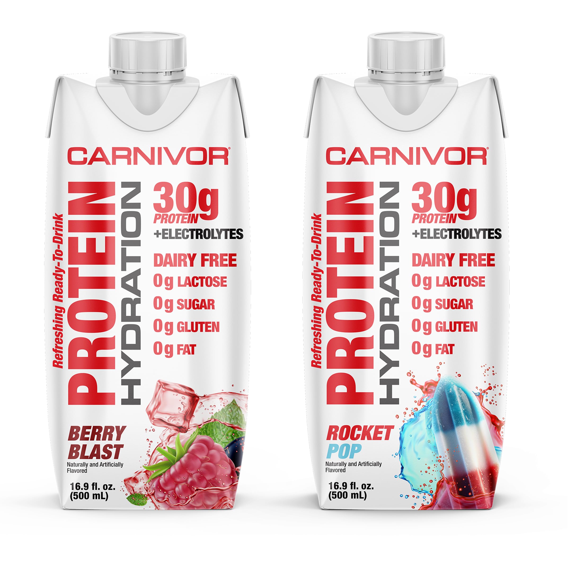 MuscleMeds Carnivor Protein Hydration RTD Refreshing Ready to Drink 30g Isolate Protein Lactose Free Sugar Free Electrolytes Halal Certified Rocket Pop Berry Blast16.9 Fl Oz Liquid (Pack of 2) Combo 16.9 Fl Oz (Pac