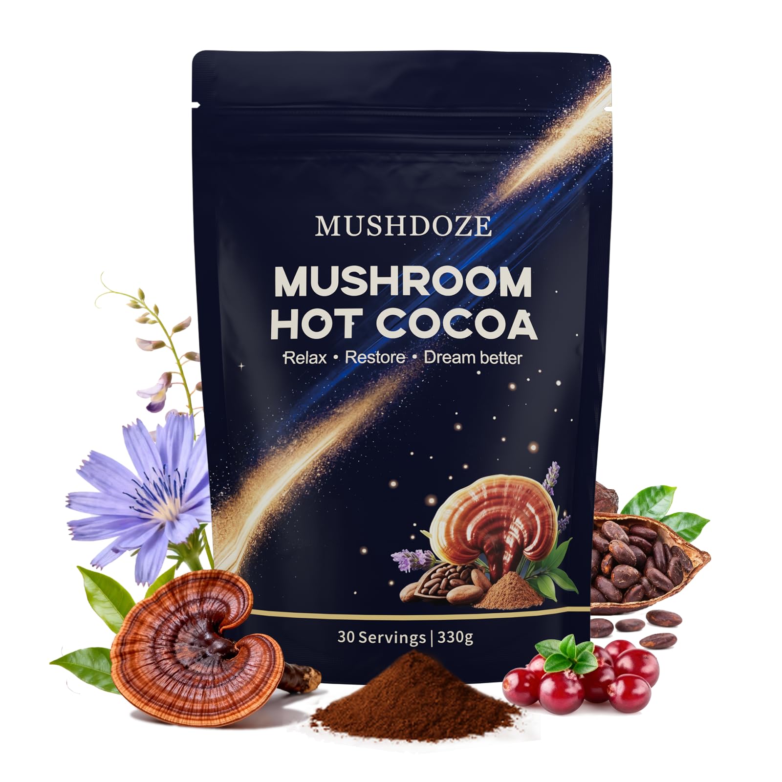 Mushdoze Mushroom Hot Cocoa Melatonin Sleep Support Cocoa Natural Nighttime Hot Chocolate for Adults with Glycine L-Theanine Reishi Mushroom Sleep Support Mushroom Coffee 30 Servings 330g