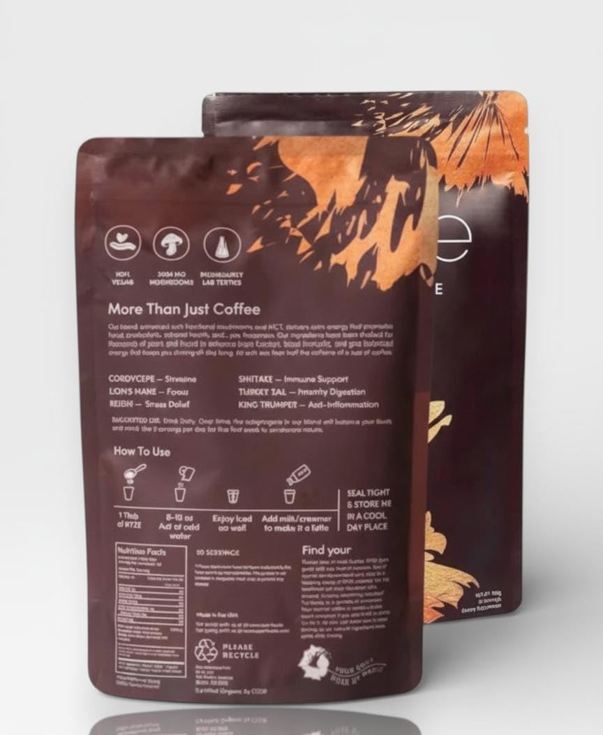 CHATTER PAWS Organic Mushroom Coffee: Focus, Fuel, and Feel-Good Energy Tired of the jitters, crash, and stomach upset from your daily coffee? It's time to upgrade your ritual. CHATTER PAWS Mushroom Coffee is a premium, organic blend designed to energize your body and sharpen your mind, delivering a clean, sustained boost that helps you perform at your peak. Elevate Your Mind Unleash Natural Energy Our unique formula harnesses the ancient power of adaptogenic mushrooms to support your modern lifestyle. Laser-Sharp Focus Clarity: Organic Lion's Mane and Cordyceps work synergistically to enhance cognitive function, support memory, and promote mental clarity. Conquer your to-do list with unwavering focus. Clean, Jitter-Free Energy: Experience a smooth wave of natural energy that lasts for hours. We've eliminated the harsh crash and anxiety of traditional coffee, so you can power through your day feeling balanced and energized. Fortify Your Wellness: Packed with powerful antioxidants from organic Chaga mushrooms, every cup actively helps strengthen your immune system and protect your body from oxidative stress, keeping you healthy and resilient. The Perfect Cup, Made Simple. We believe profound benefits should come with effortless preparation. Instant Convenient: Just scoop, stir into hot water, and enjoy a perfectly smooth cup in seconds. Ideal for busy mornings, the office, or a calming afternoon pick-me-up. Pure, Clean Ingredients: With no added sugar, no fillers, no preservatives, and no artificial flavors, you can feel great about what you're putting into your body. It's vegan, gluten-free, and gut-friendly. 30 Servings of Transformation: Each 180g bag is your month-long supply of a smarter, healthier daily ritual. Your Body Planet Will Thank You We're committed to wellness that extends beyond you. Our coffee is packaged in eco-friendly materials, reflecting our dedication to sustainability and reducing our carbon footprint. ✓ Sustain Energy ✓ Enhance Focus ✓ Support Immunity ✓ Promote Gut Health ✓ 100 Vegan Gluten-Free ✓ Eco-Conscious Ready to Transform Your Daily Routine? Choose a coffee that does more. Choose CHATTER PAWS.Fuel Your Values with a Vegan Eco-Conscious Choice. Feel good about your purchase. Our blend is 100 vegan, gluten-free, and sustainably packaged to support your health and the planet's. Just Add Water for an Instant Wellness Upgrade. The easiest part of your day. Get a perfectly smooth, flavorful cup in seconds with our convenient instant mix—no sugar, fillers, or artificial flavors. Enjoy a Gut-Friendly, Jitter-Free Experience. Finally, a coffee that's gentle on your stomach. Achieve balanced energy with no negative side effects, making your daily ritual both enjoyable and beneficial. Strengthen Your Immunity with Every Sip. Powered by antioxidant-rich Chaga mushrooms, this coffee helps protect your body from free radicals and supports a resilient immune system all year round. Get Laser-Sharp Focus Sustained Energy. Our organic Lion's Mane and Cordyceps blend enhances mental clarity and provides a clean, natural boost without the jitters or crash of regular coffee.