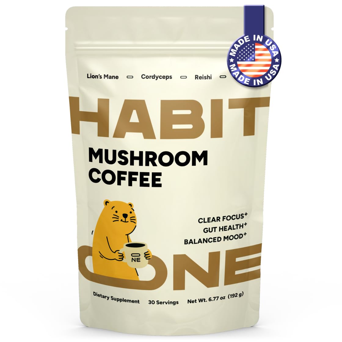 Mushroom Coffee Made in USA - Great Taste - Smooth Energy - No Bloating with Lion s Mane, Cordyceps, Reishi, Chaga - Adaptogens & Nootropics Blend 30 Servings