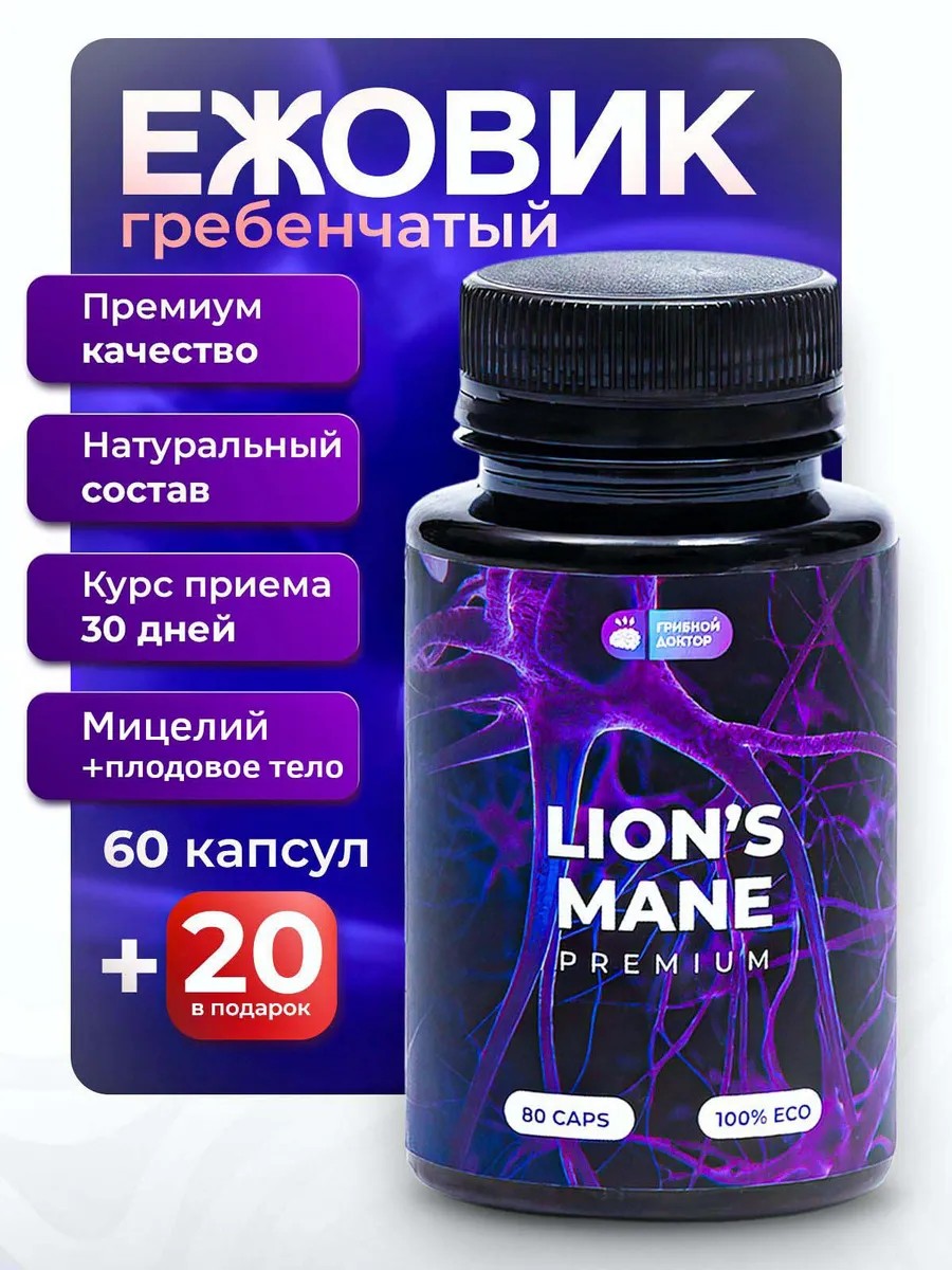 грибной доктор Ежовик Гребенчатый (Lions Mane Premium) капсулы 80шт 700мг