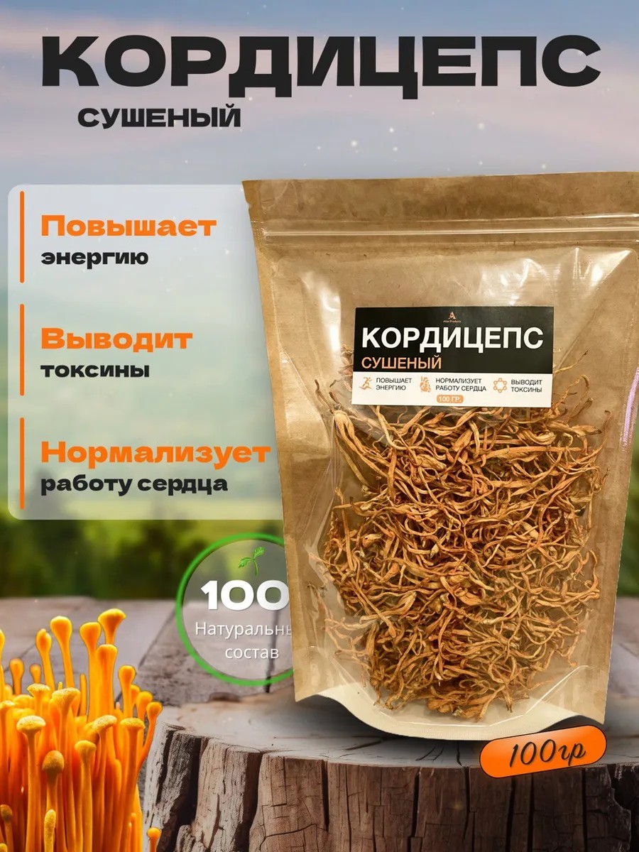 Dried Cordyceps, Cordyceps militaris (Cordyceps militaris) 100 grams - a natural product. Enhanced formula for strengthening the immune system, men's health, relieving chronic fatigue, and increasing performance.