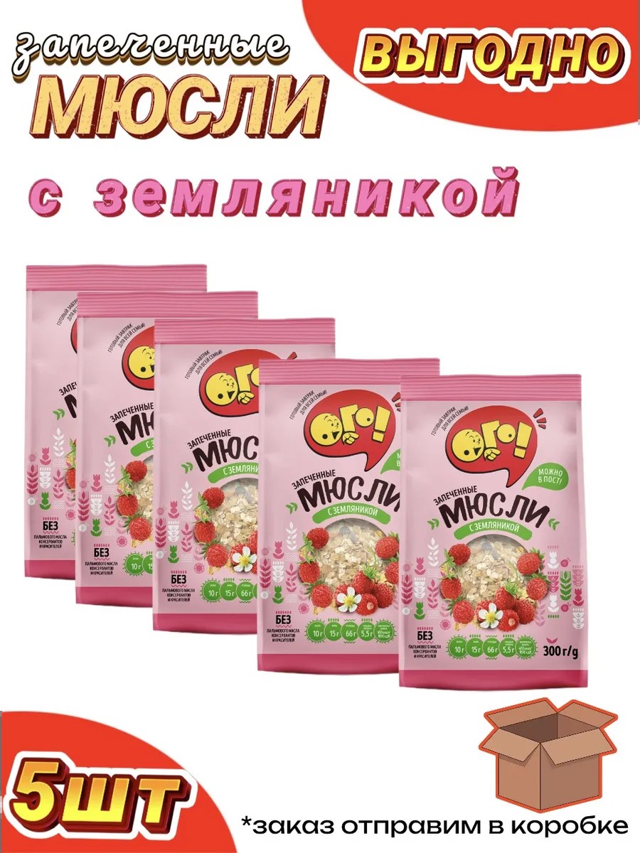 ОГО Мюсли ОГО с земляникой 5 шт по 300г, запеченные