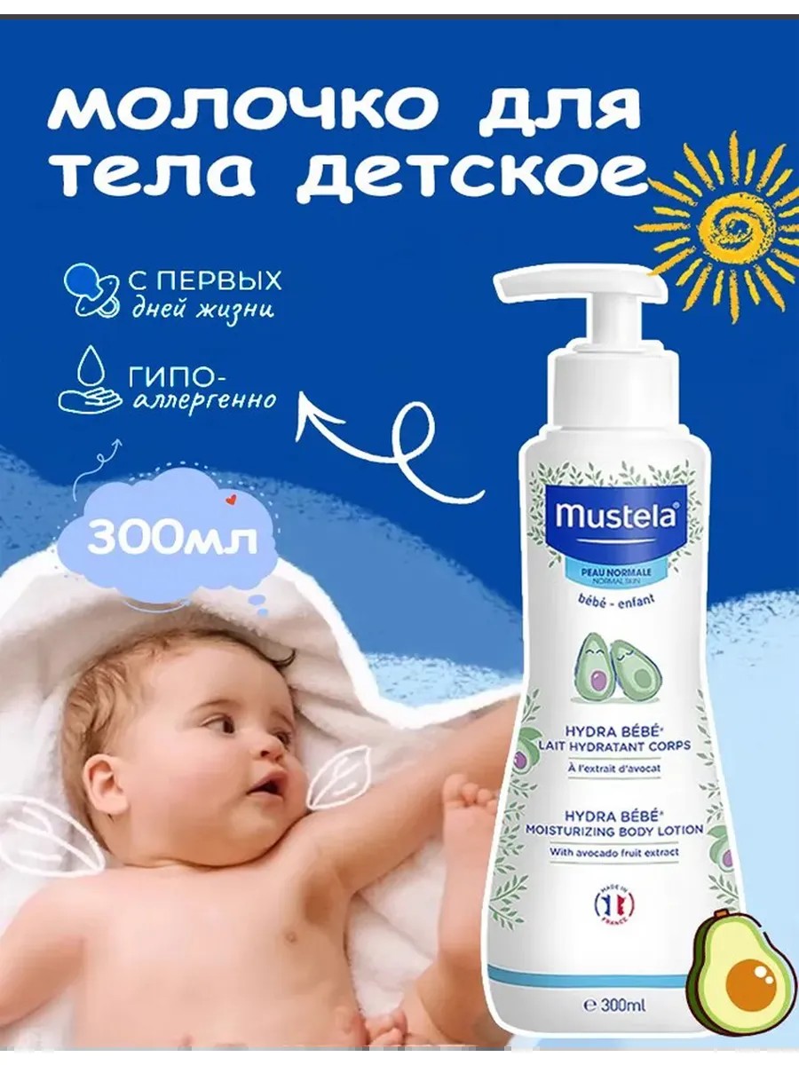 Для детей с рождения. Мгновенно увлажняет кожу, сохраняя эффект увлажнения надолго. Сохраняет баланс воды в эпидермисе.С первого применения.Молочко для тела способствует естественному развитию кожи малыша, поддерживая ее собственную защиту и увлажнение.Настоящий бестселлер Mustela! Входит в состав трех первых средств для малыша, которые вам потребуются с первого купания и для ежедневного ухода за кожей.В составе 97% ингредиентов природного происхождения.Герой Mustela – органический авокадо!Avocado Perseose (Авокадо Персеоз) получен из экологически чистых источников с использованием ответственной цепочки поставки и безотходного производства. Он помогает укрепить кожный барьер, сохраняя ресурсы нежной кожи малыша.Хорошая переносимость с рождения.Протестировано под контролем дерматологов и педиатров.