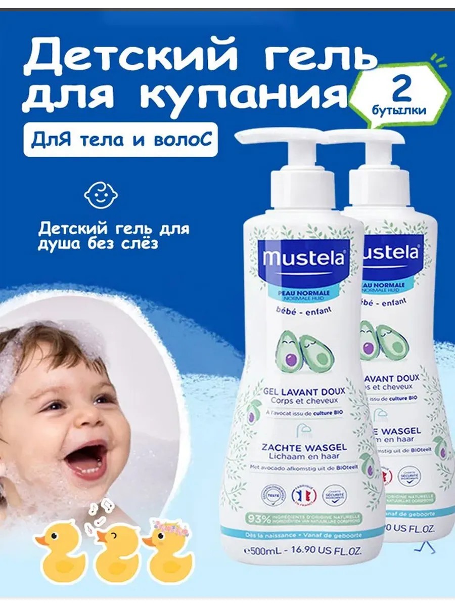Mustela гель для душа детский 2 в 1 для тела и волос 500 мл*2