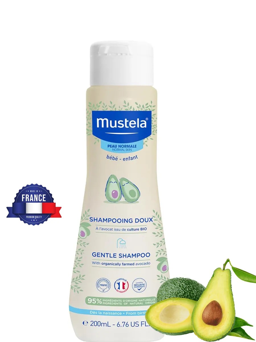 Mustela Нежный шампунь для детей с Авокадо 200мл— это идеальный выбор для заботливых родителей, стремящихся обеспечить своим малышам максимальный комфорт и безопасность. Произведенный во Франции, этот шампунь специально разработан для младенцев и детей, начиная с самого рождения. Его мягкая формула идеально подходит для тонких и нежных волос, позволяя без труда распутывать их во время купания.Одним из главных преимуществ данного продукта является его уникальная формула без слез. Это означает, что ваш ребенок сможет наслаждаться процессом мытья головы, не испытывая дискомфорта или неприятных ощущений. Шампунь легко смывается и не щиплет глаза, что делает его идеальным для ежедневного использования. Состав Мустела Нежного шампуня на 95% состоит из растительных ингредиентов, включая натуральное авокадо, которое защищает и увлажняет нежную кожу головы малыша. Экстракт ромашки в формуле помогает смягчить и распутать волосы, что делает их более послушными и легкими в укладке. Вы сможете легко нанести небольшое количество шампуня на влажные волосы ребенка, аккуратно помассировать и смыть — и ваш малыш будет готов к новым приключениям.Кроме того, шампунь обладает тонким и приятным ароматом, который оставляет на коже уникальный след. Это делает купание не только полезным, но и приятным ритуалом для вашего малыша и вас. Продукт гипоаллергенен и безопасен для использования с рождения, что дает родителям дополнительное спокойствие.Мустела Нежный шампунь — это не просто уход за волосами, это забота о здоровье и комфорте вашего ребенка. Он станет отличным подарком для новорожденных и детей, а также незаменимым помощником для заботливых мам. Выбирайте качественную французскую косметику для вашего малыша и наслаждайтесь каждым моментом совместного купания! Не упустите возможность подарить своему ребенку лучшее — выберите Mustela Нежный шампунь для детей с Авокадо и убедитесь, что уход за волосами может быть легким и приятным!