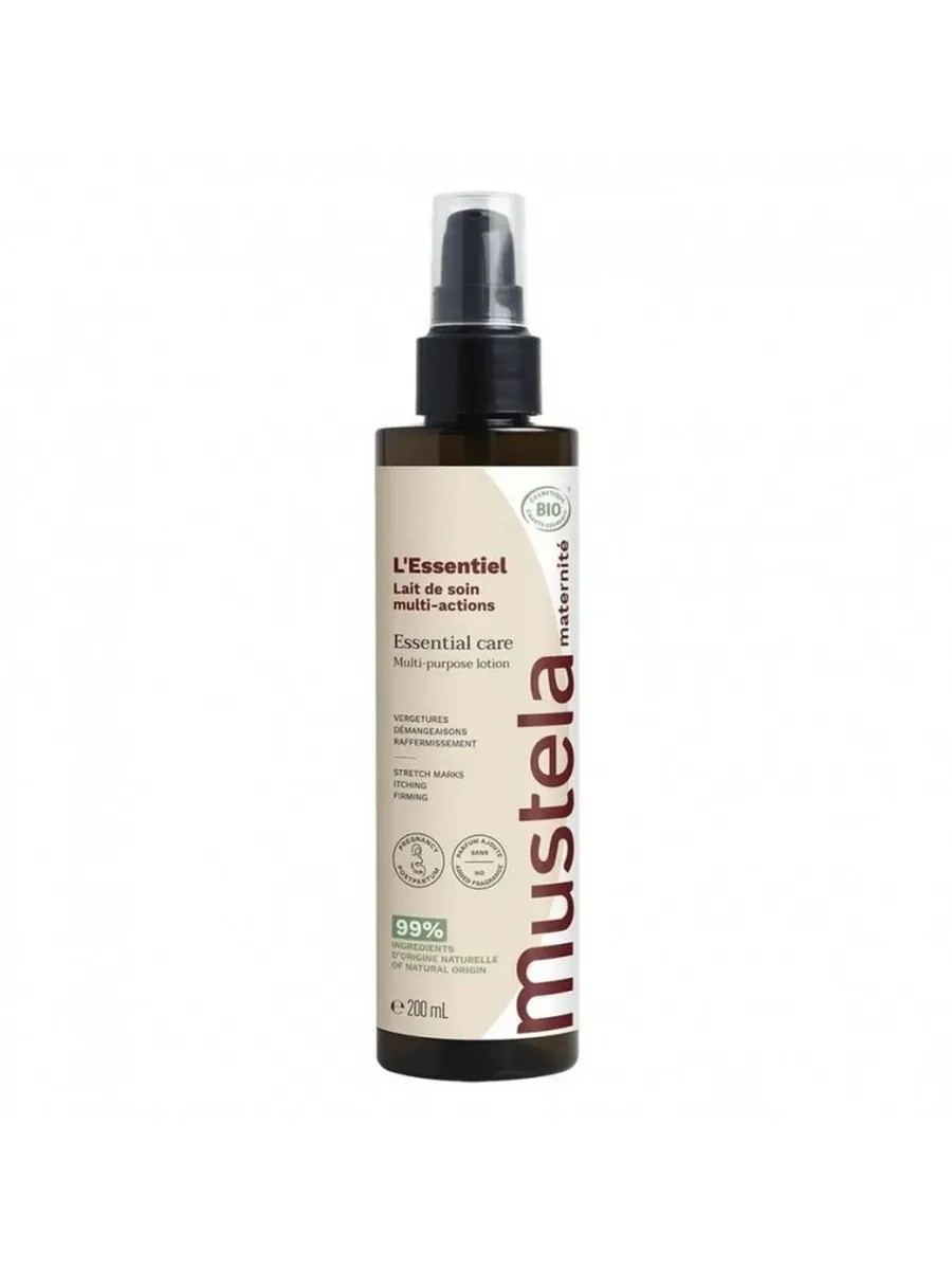 Mustela Essential Care — это органический многоцелевой лосьон для беременных, который содержит 200 мл средства по уходу за кожей. Он предназначен для удовлетворения основных потребностей кожи во время беременности и после неё.