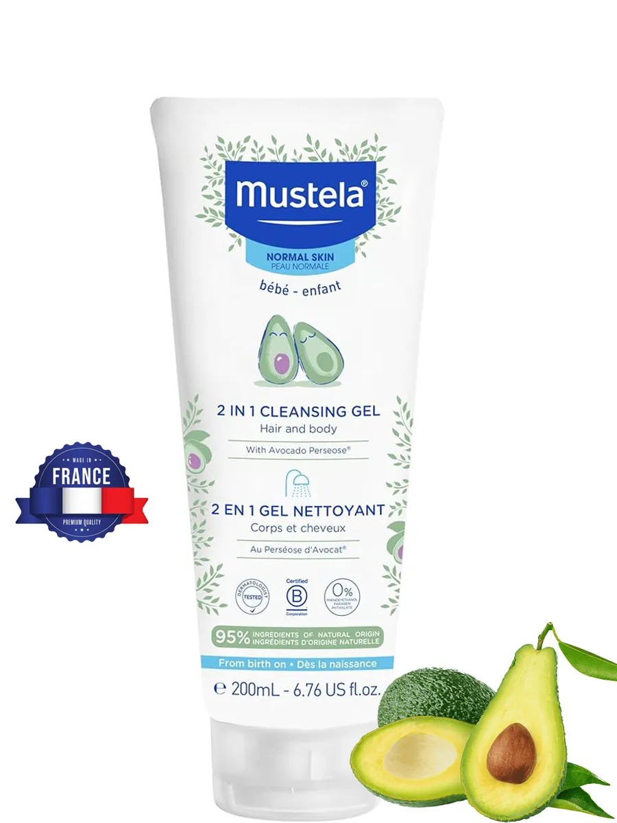 Discover Mustela—French cosmetics created specifically to care for your baby's delicate skin. Our baby cleansing gel with avocado provides gentle and effective cleansing, ideal for both babies and newborns. This unique 2-in-1 product combines the functions of a cleansing gel and shampoo, making it an indispensable aid in your baby's care. The formula, adapted for sensitive skin, is tear-free, making bathtime a pleasant and carefree experience. The key ingredient, Avocado Perseose, strengthens the skin barrier and protects the cellular capital of the skin, providing reliable protection from external factors. Combined with vegetable glycerin, which actively moisturizes and prevents moisture evaporation, this gel cares for the health of your baby's skin. Mild surfactants prevent dry skin and scalp, ensuring your little one feels comfortable and cozy. Mustela isn't just cosmetics; it's a philosophy of caring for children's skin. We use 95% natural ingredients, making our products hypoallergenic and safe for the littlest ones. You can be sure that our cleansing gel not only effectively removes impurities but also soothes skin without leaving a residue or dryness. The convenient tube format is perfect for travel, allowing you to take your favorite product with you anywhere. Why clutter your bathroom with multiple products when you can use one universal solution for your child's body and hair care? Choose Mustela and give your little one the gentle care they deserve. Make bath time easy and enjoyable, and time spent with your child unforgettable!