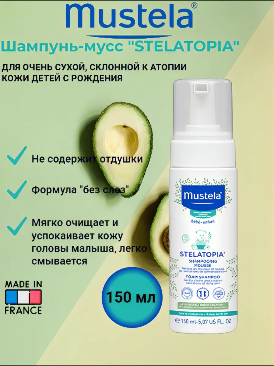 Mustela Stelatopia Шампунь-мусс без слез для детей 150 мл
