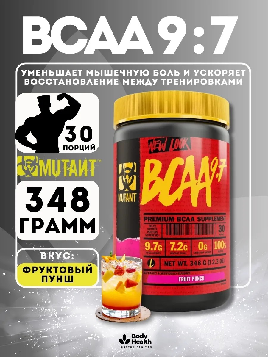 Mutant BCAA (БЦАА)- это разветвленные аминокислоты, которые являются незаменимыми и помогает строительству белков, а белки способствуют росту мышечной массы. Мутант БЦАА также является источником магния, который способствует нормальному синтезу белка.