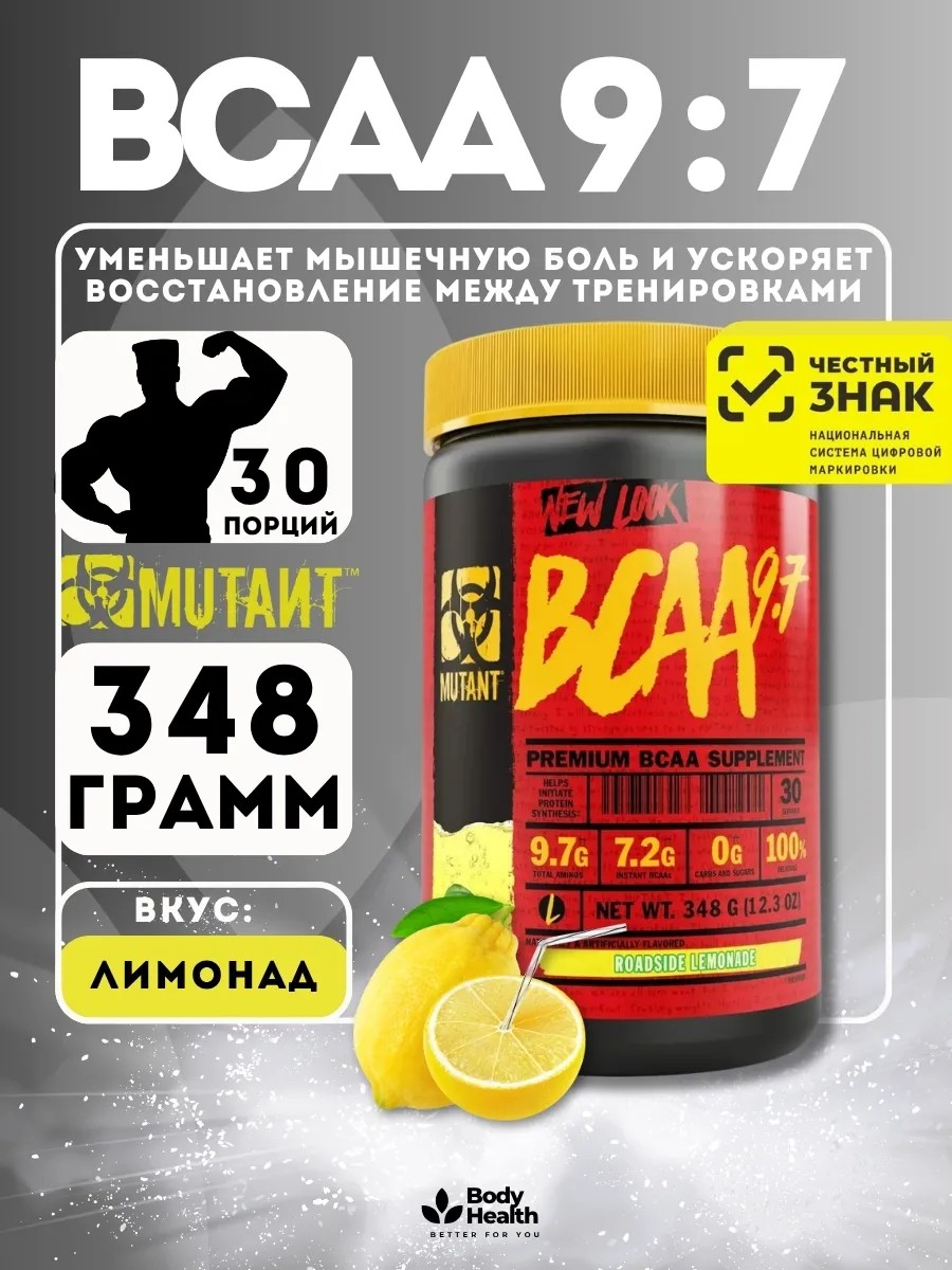 Mutant BCAA (БЦАА)- это разветвленные аминокислоты, которые являются незаменимыми и помогает строительству белков, а белки способствуют росту мышечной массы. Мутант БЦАА также является источником магния, который способствует нормальному синтезу белка.