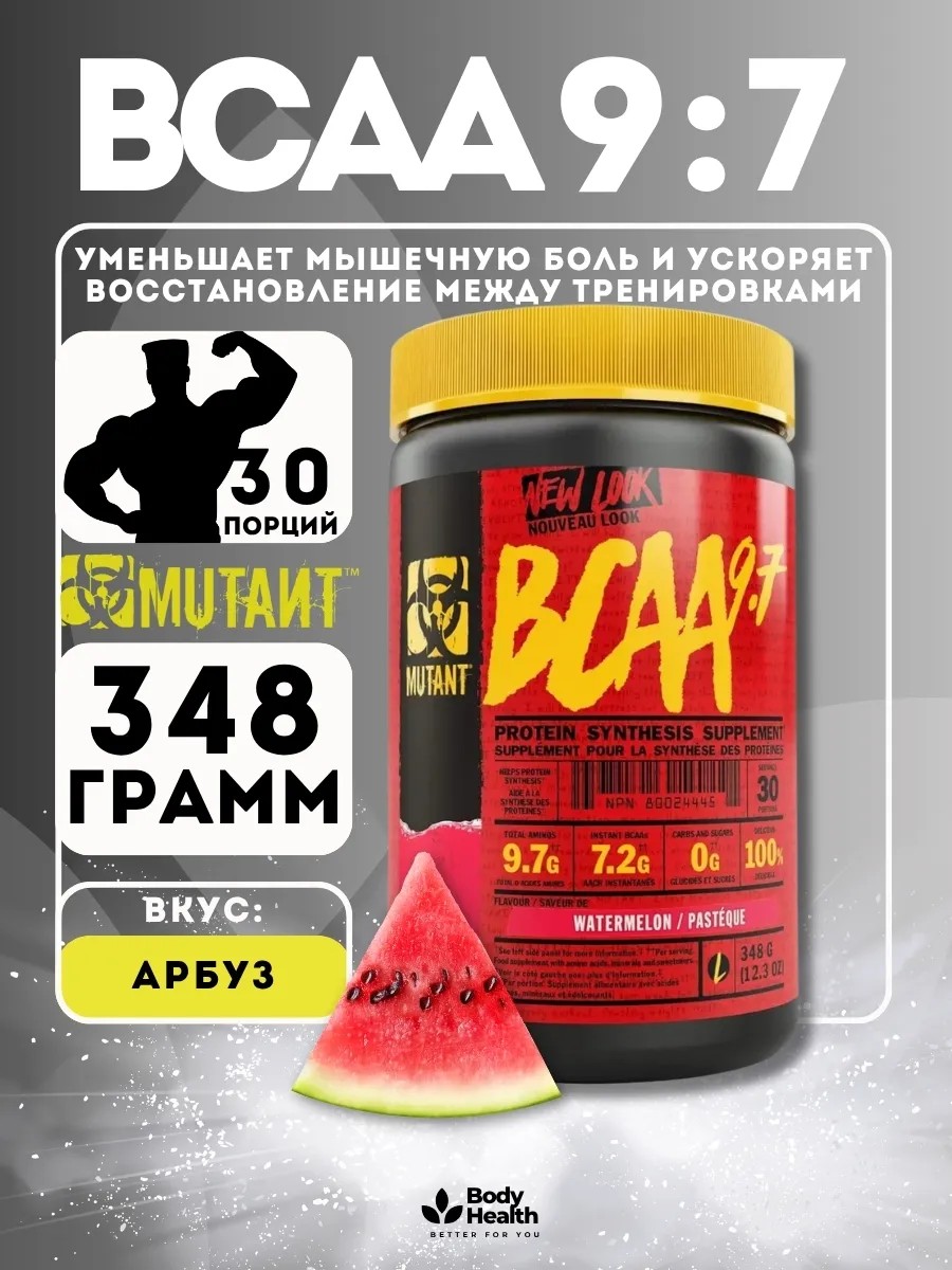 Mutant BCAA (БЦАА)- это разветвленные аминокислоты, которые являются незаменимыми и помогает строительству белков, а белки способствуют росту мышечной массы. Мутант БЦАА также является источником магния, который способствует нормальному синтезу белка.