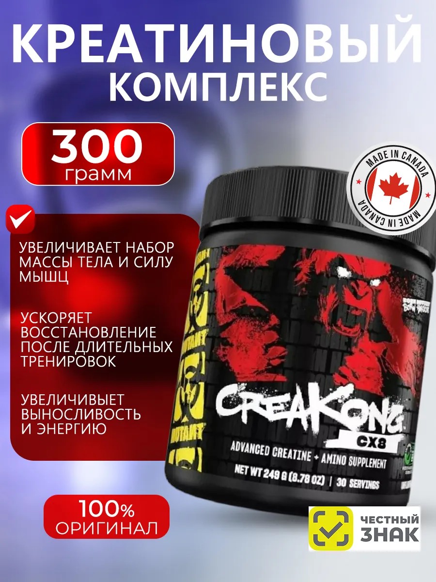 Creatine Mutant Creakong 300 г. Креатин — это уникальная спортивная добавка, которая поможет вам достичь максимальных результатов в тренировках, подходит и женщинам, и мужчинам. Улучшая мышечную выносливость и ускоряя восстановление после нагрузок, креатин поможет вам преодолеть свои пределы и улучшить свою физическую форму.