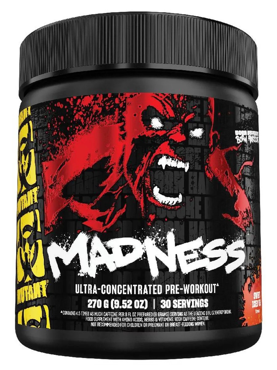 Предтренировочный комплекс Mutant MADNESS позволяет существенно усилить физические возможности перед спортивной тренировкой. Предтреник насыщает организм энергией и поможет достичь в спорте максимальных результатов. В его состав входит креатин (creatine) и аргинин, способствующие проведению турбо тренировок и набору веса, питанию клеток и наращиванию мышечной массы. Кроме того, БАД без сахара и лактозы содержит кофеин, устраняющий усталость. Ни один высококалорийный, высокобелковый и высокоуглеводный протеиновый power батончик, как и печенье с шоколадом и ванилью, углеводный, протеиновый гейнер обогащение протеином, белком и углеводами, не дадут столь выраженный результат. Насыщенный сложными аминокислотами БАД, применяющийся в жидком виде, станет идеальным дополнением натурального спортпит. Тем более, что его эффективность гораздо выше, чем у средств в виде капсул. Внутри продукта находится пакет с влагоудерживающим агентом. Будьте внимательны!