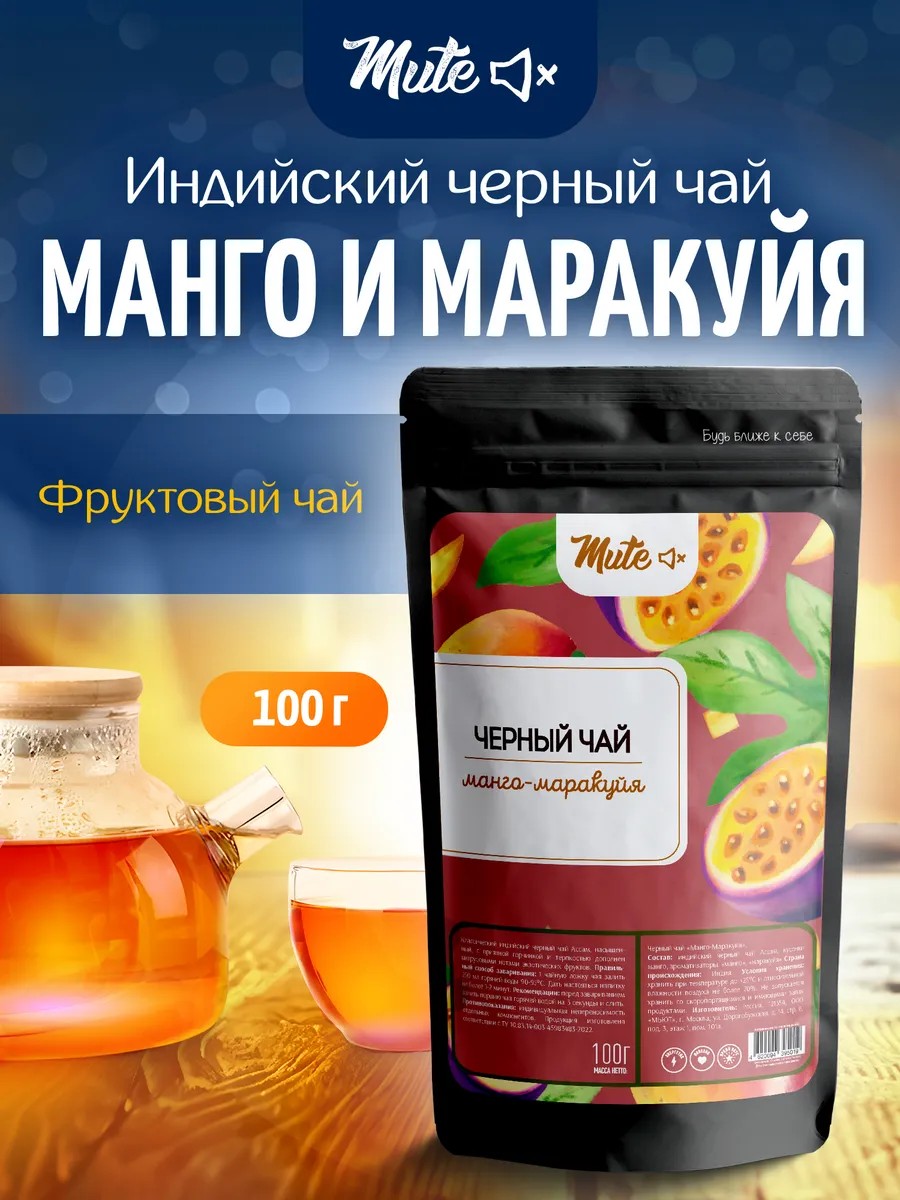 Черный чай фруктовый Манго-Маракуйя от MUTE – это не просто напиток, это настоящее путешествие по вкусам, которое добавит яркости и свежести в ваш день.