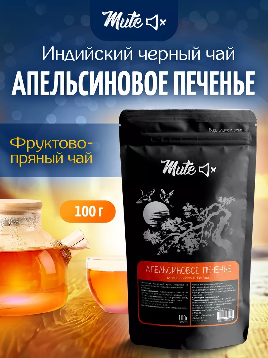 Mute Черный чай Апельсиновое печенье, 100 г.